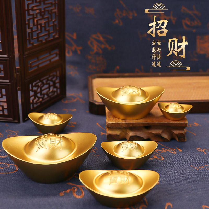 Quà tặng khai trương Đồng thau Thỏi vàng Trang trí May mắn tài lộc Trang trí phòng khách Đồng nguyên chất rắn Nhà máy Yuanbao Bán buôn
