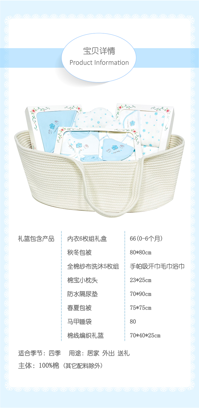 quà tặng sơ sinh miyio màu xanh cao cấp quà tặng sơ sinh chất lượng cao đồ lót cotton romper đồ lót giặt bộ đồ giường món quà ngủ màu xanh