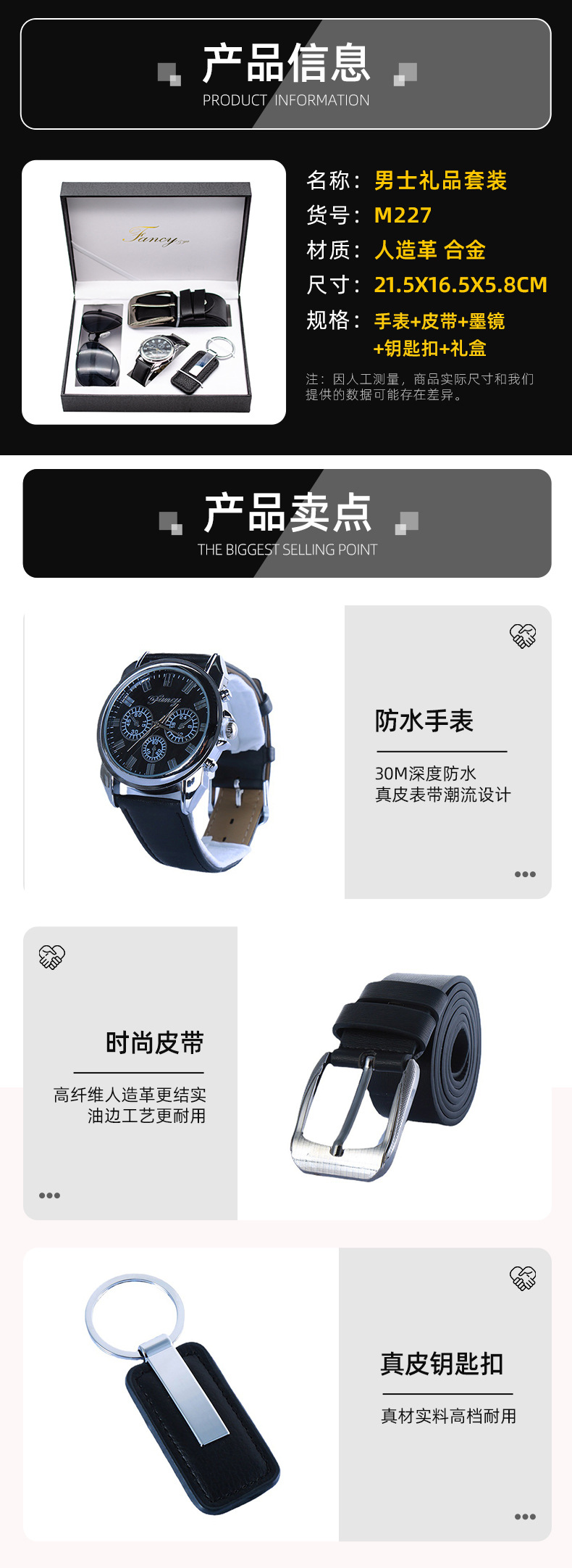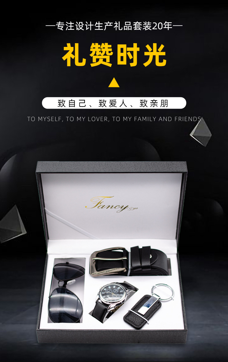 Quà tặng xuất khẩu Bộ đồng hồ thạch anh Thắt lưng Kính râm phân cực Móc khóa Bộ hộp Bộ quà tặng nam doanh nhân