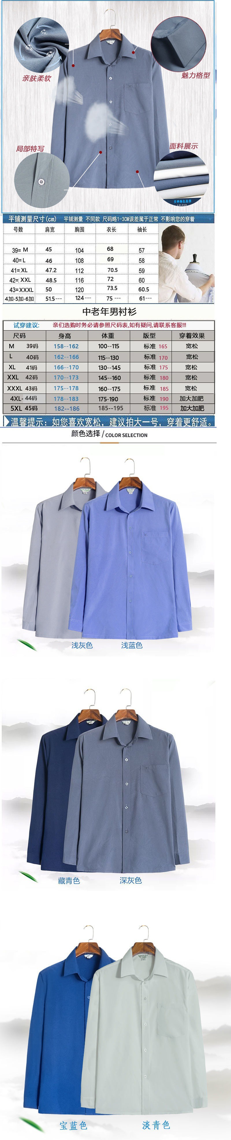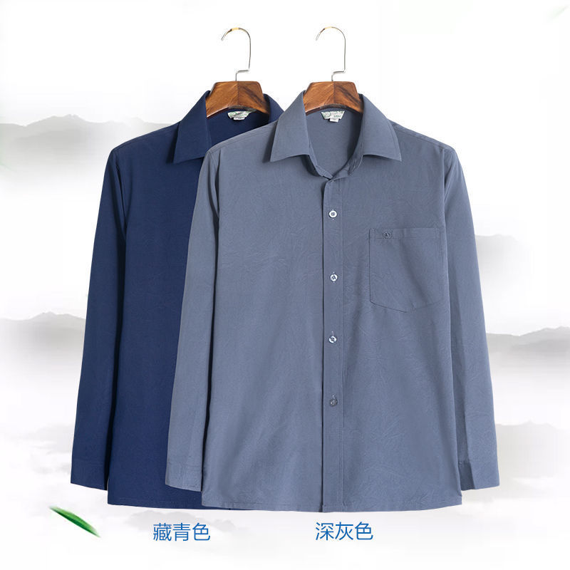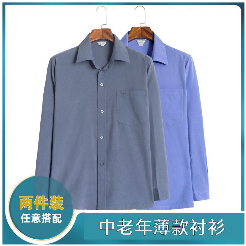 Quần áo của cha áo sơ mi nam trung niên và cao tuổi phần mỏng mùa hè áo sơ mi trung niên dài tay màu quần áo nam cao tuổi xõa thay tóc