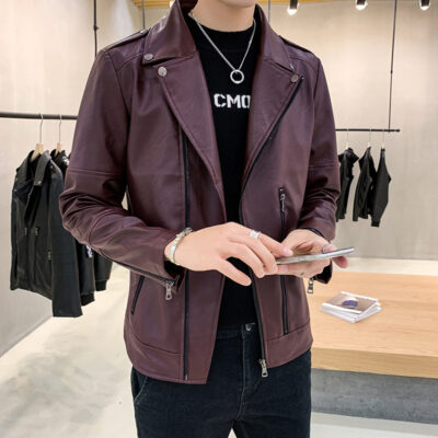 Quần áo da nam Xuất khẩu mùa xuân và mùa thu 2022 áo khoác thường mới phong cách Hàn Quốc dáng ôm cổ vest áo khoác da nam thời trang