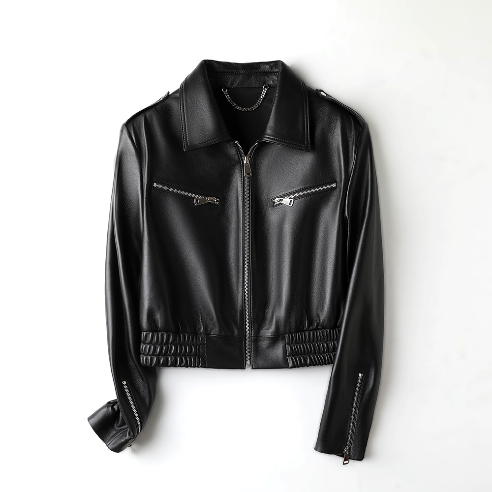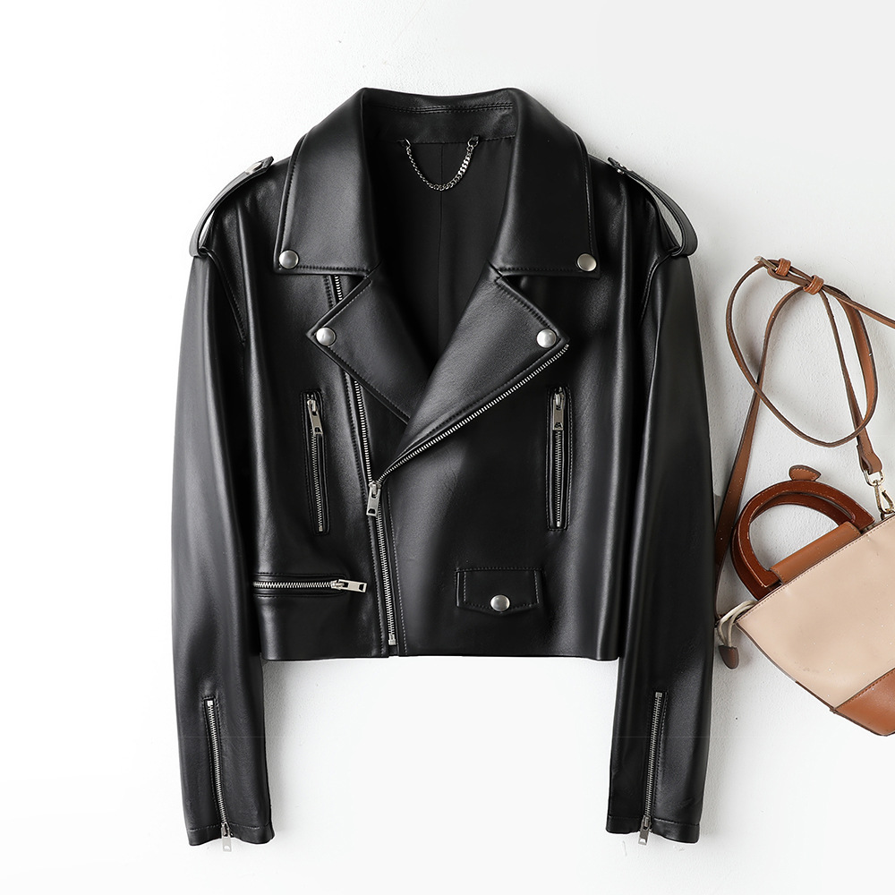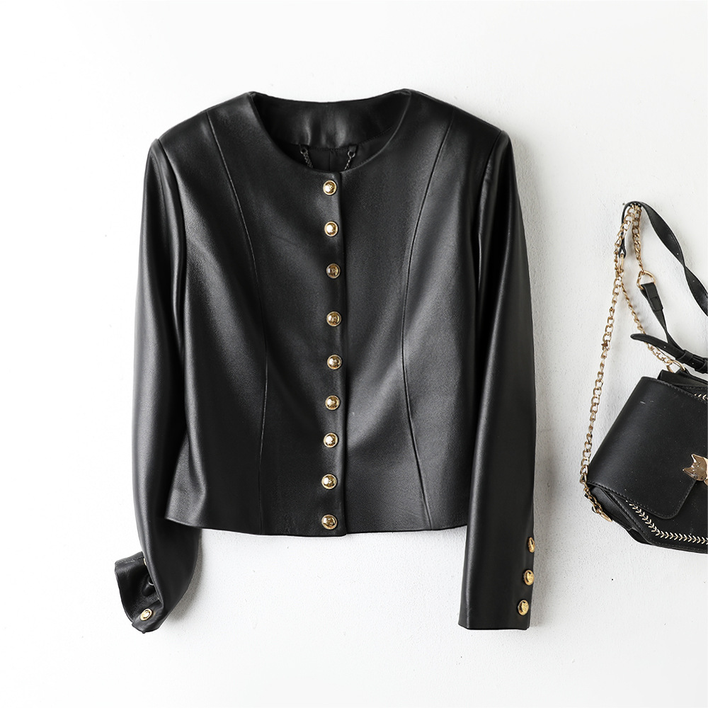 Quần áo da thật bán buôn phúc lợi chống mùa áo khoác nữ da cừu lớp một trực tiếp cung cấp một chiếc áo khoác ngắn thay mặt cho