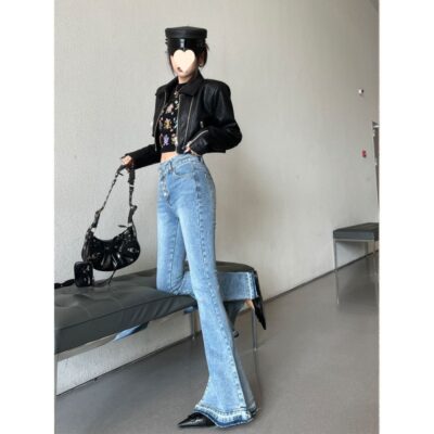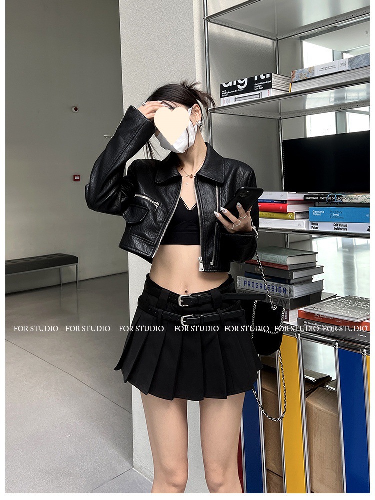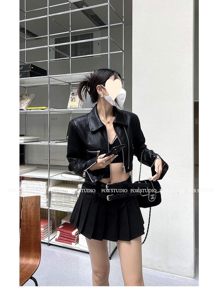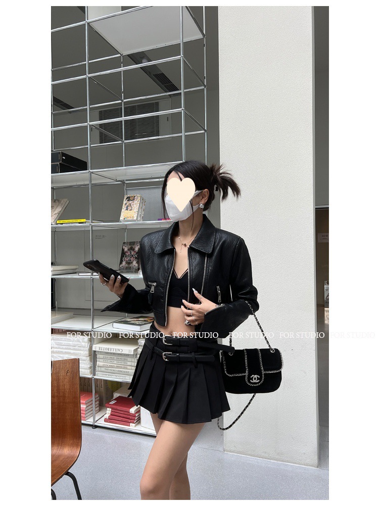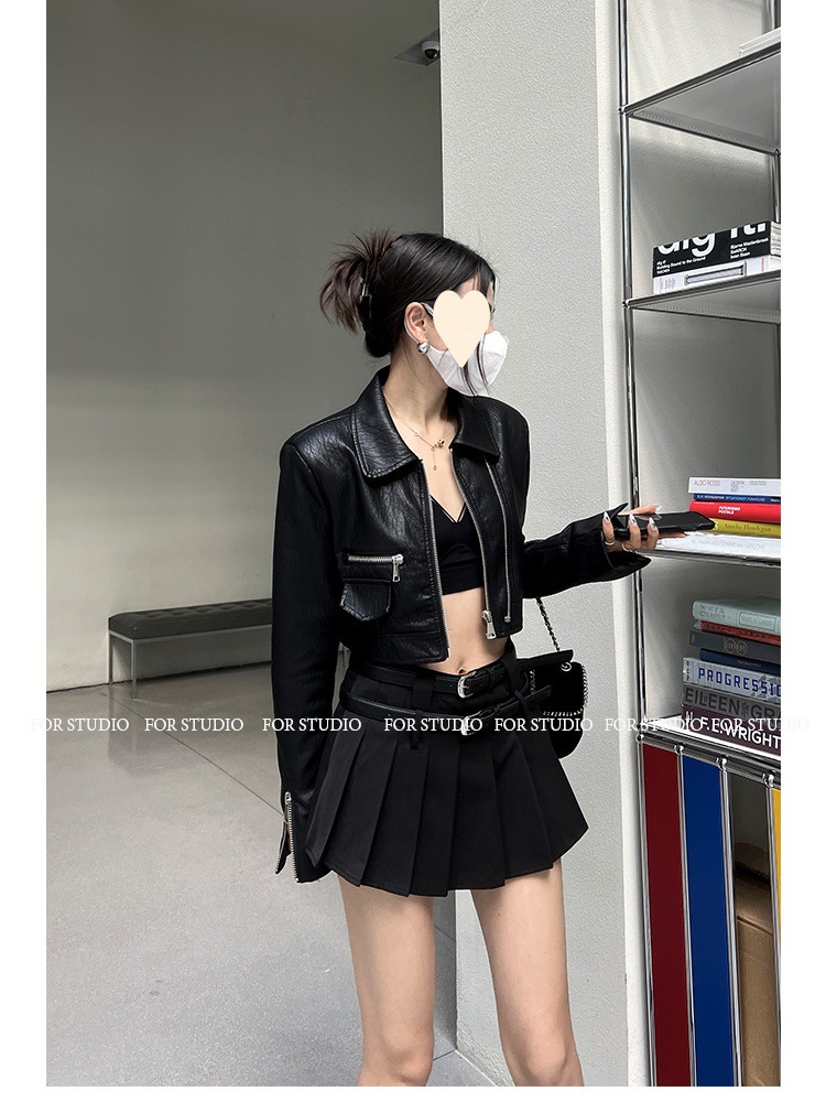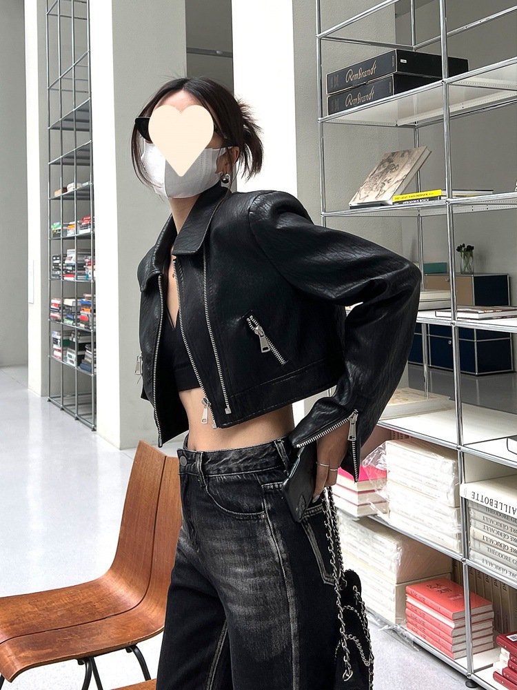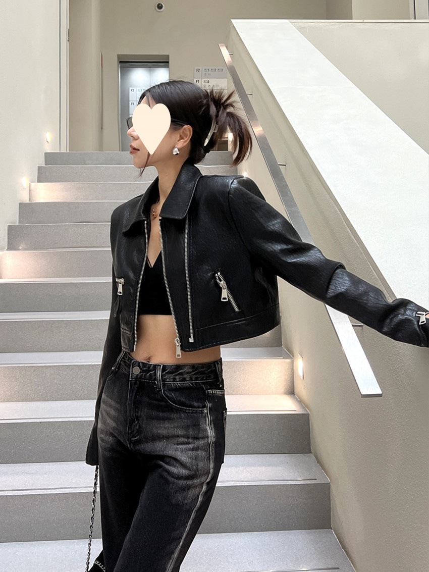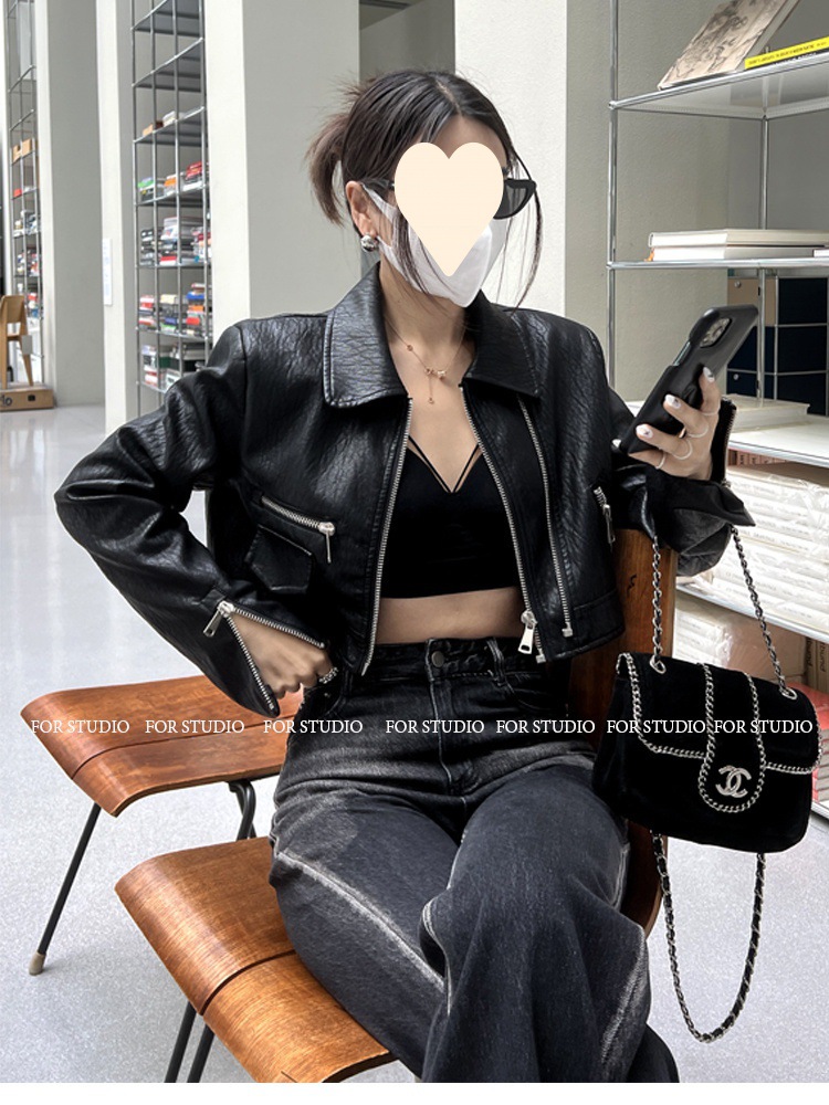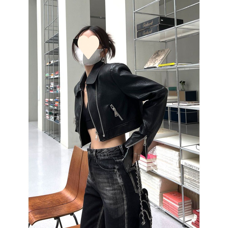 Quần Áo Da Thật Da Xe Máy Áo Khoác Mùa Xuân 2023 Mới Quần Áo Nữ Chiên Phố Dáng Rộng Cổ Ngắn Áo Khoác Bán Buôn
