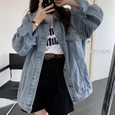 Quần áo denim áo khoác nữ mới đầu mùa thu 2023 áo khoác denim thường ngày quần áo nữ BF áo khoác dụng cụ thời trang nữ