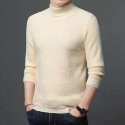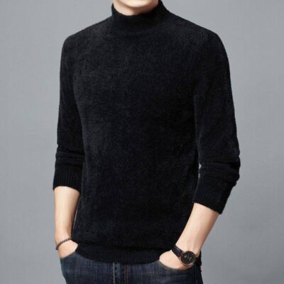 Quần áo nam dày vừa vặn áo len nhung lông chồn ấm áp nam trung niên và thanh niên áo len nửa cổ lọ có đáy áo sơ mi