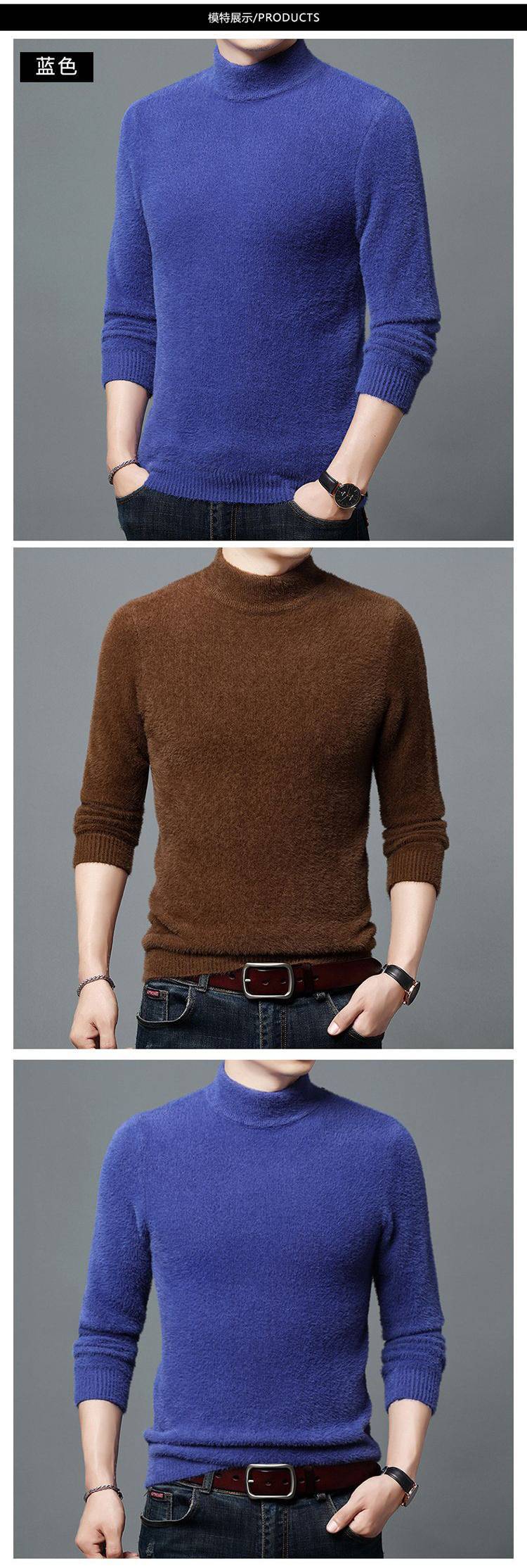 Quần áo nam dày vừa vặn áo len nhung lông chồn ấm áp nam trung niên và thanh niên áo len nửa cổ lọ có đáy áo sơ mi