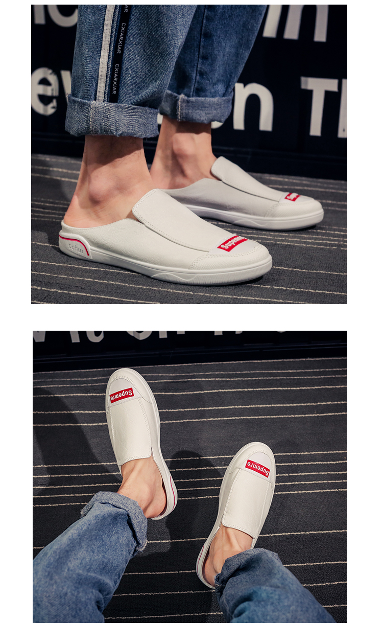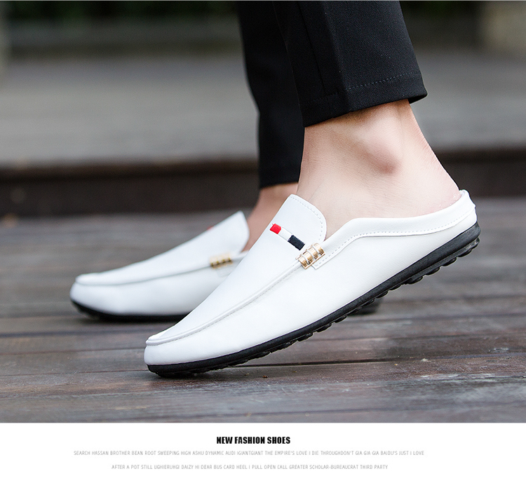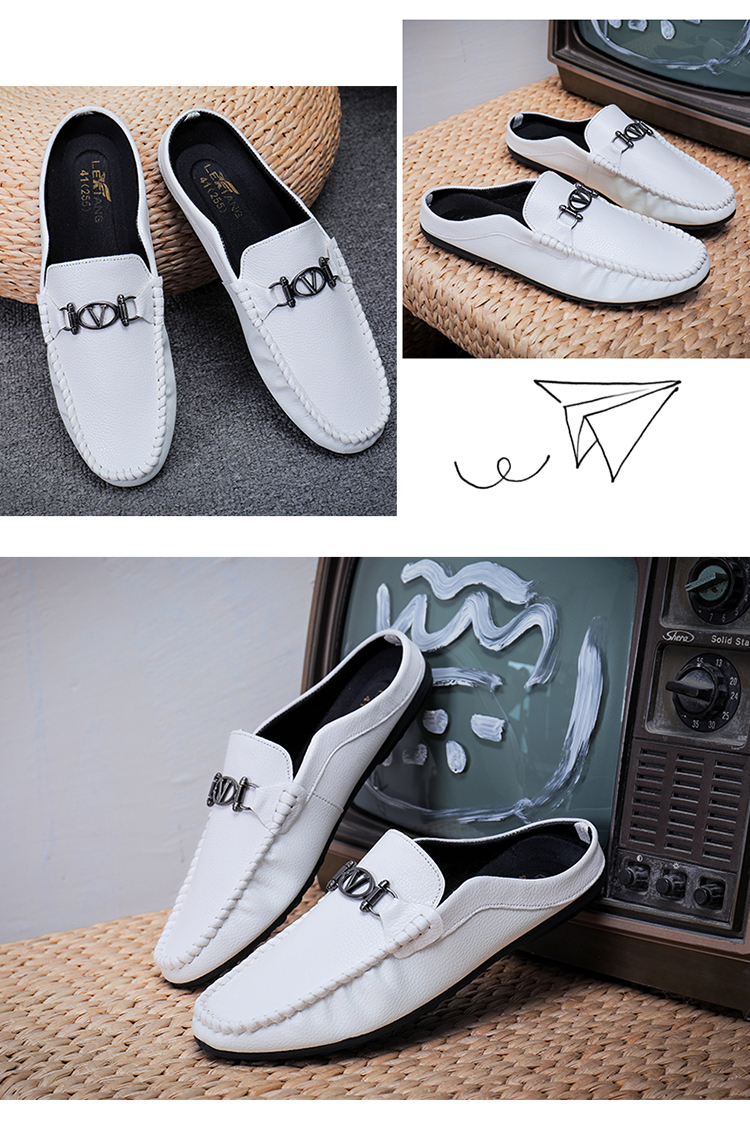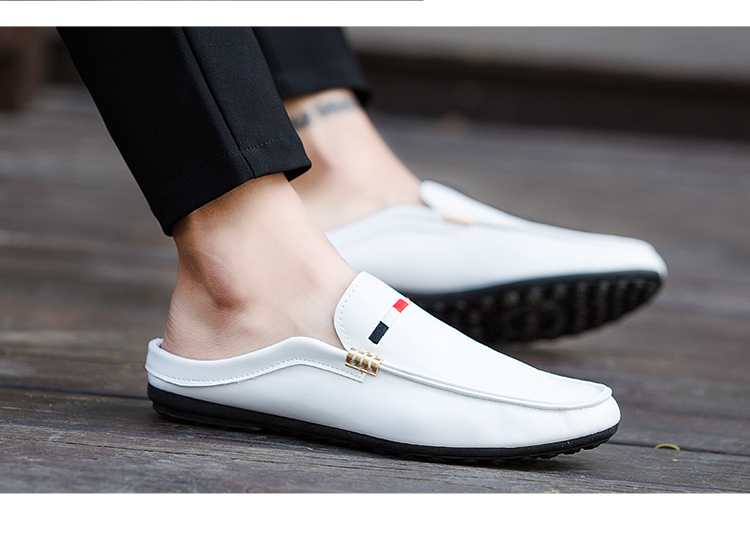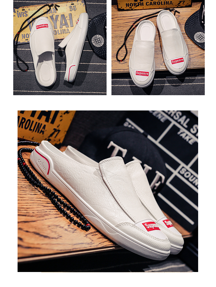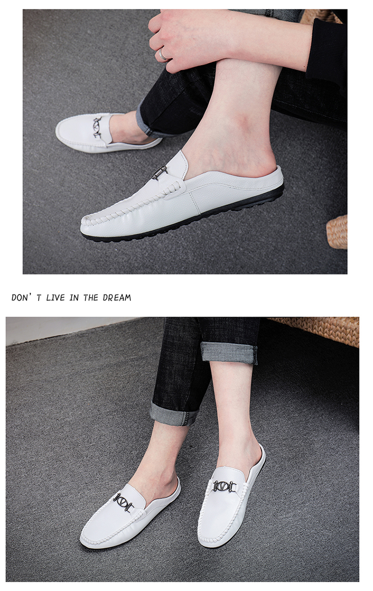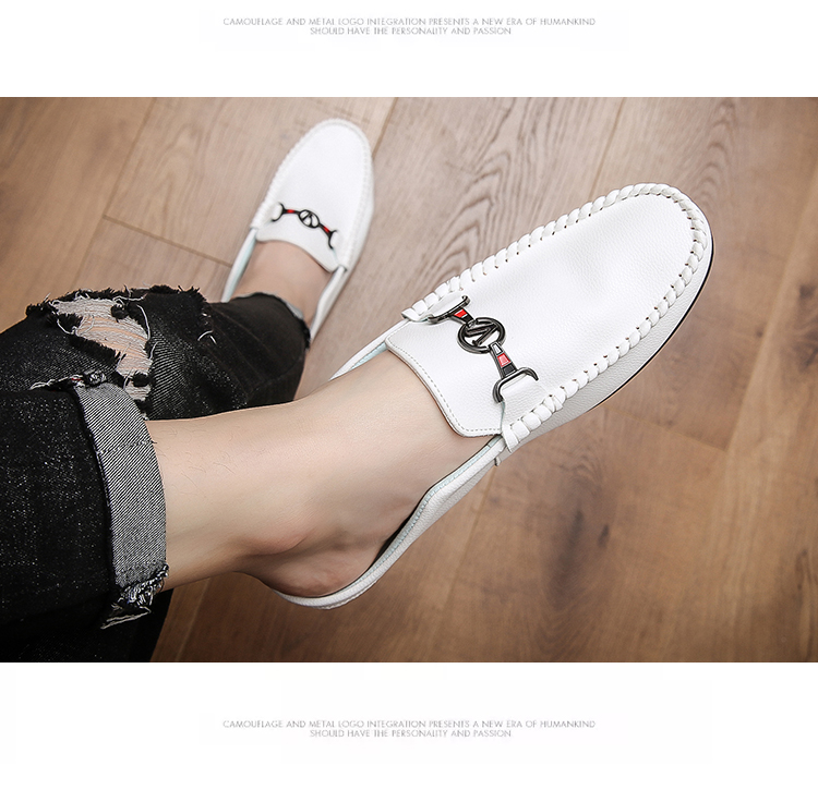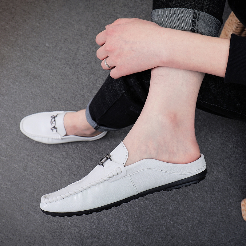 Quần áo nam mùa hè thanh niên không có gót Người Anh trêu chọc Giày Doudou Phiên bản Hàn Quốc da nửa kéo không gốc giày trắng giày da thủy triều