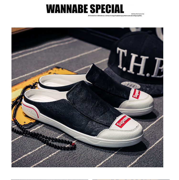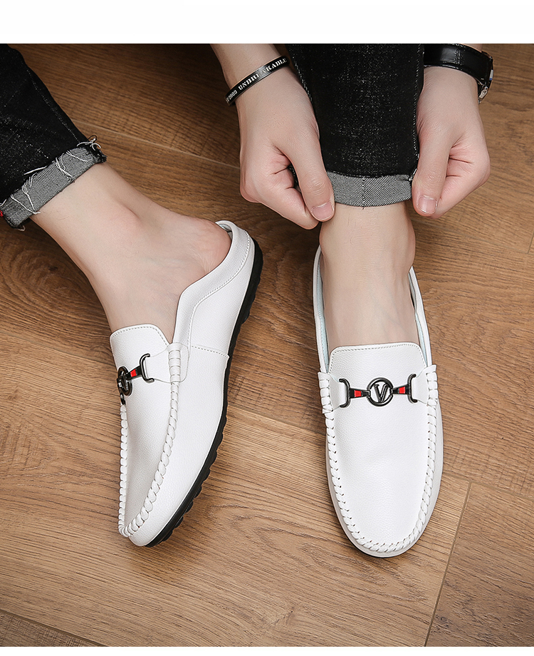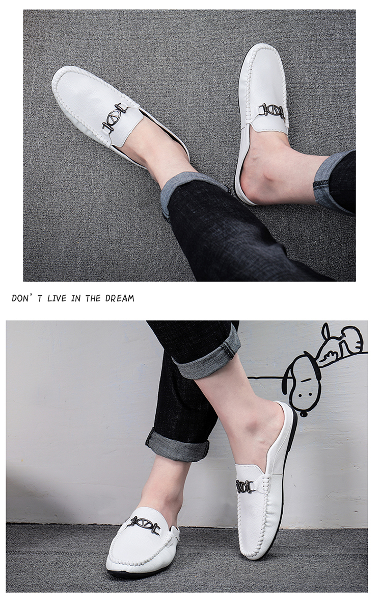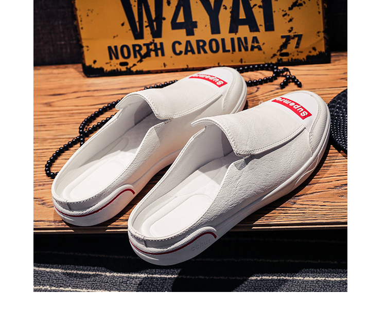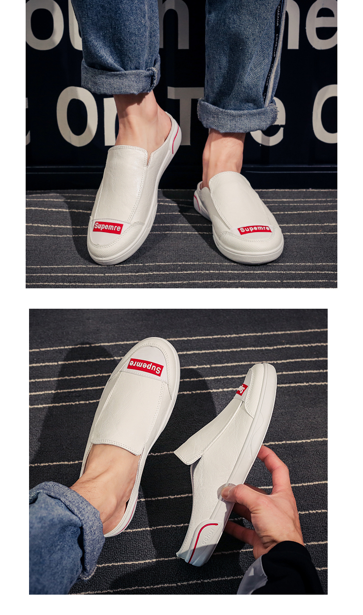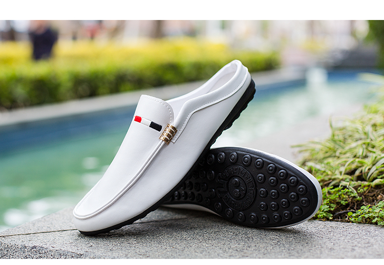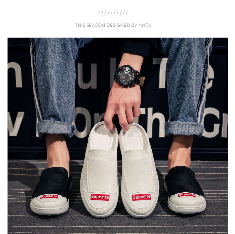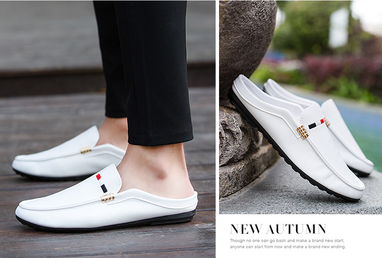 Quần áo nam mùa hè thanh niên không có gót Người Anh trêu chọc Giày Doudou Phiên bản Hàn Quốc da nửa kéo không gốc giày trắng giày da thủy triều