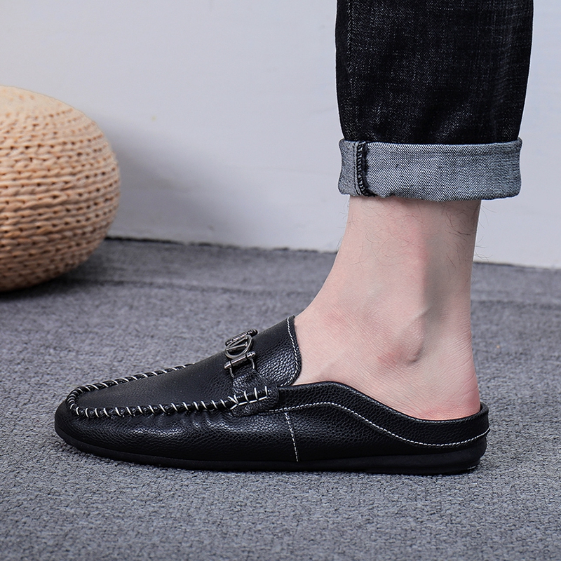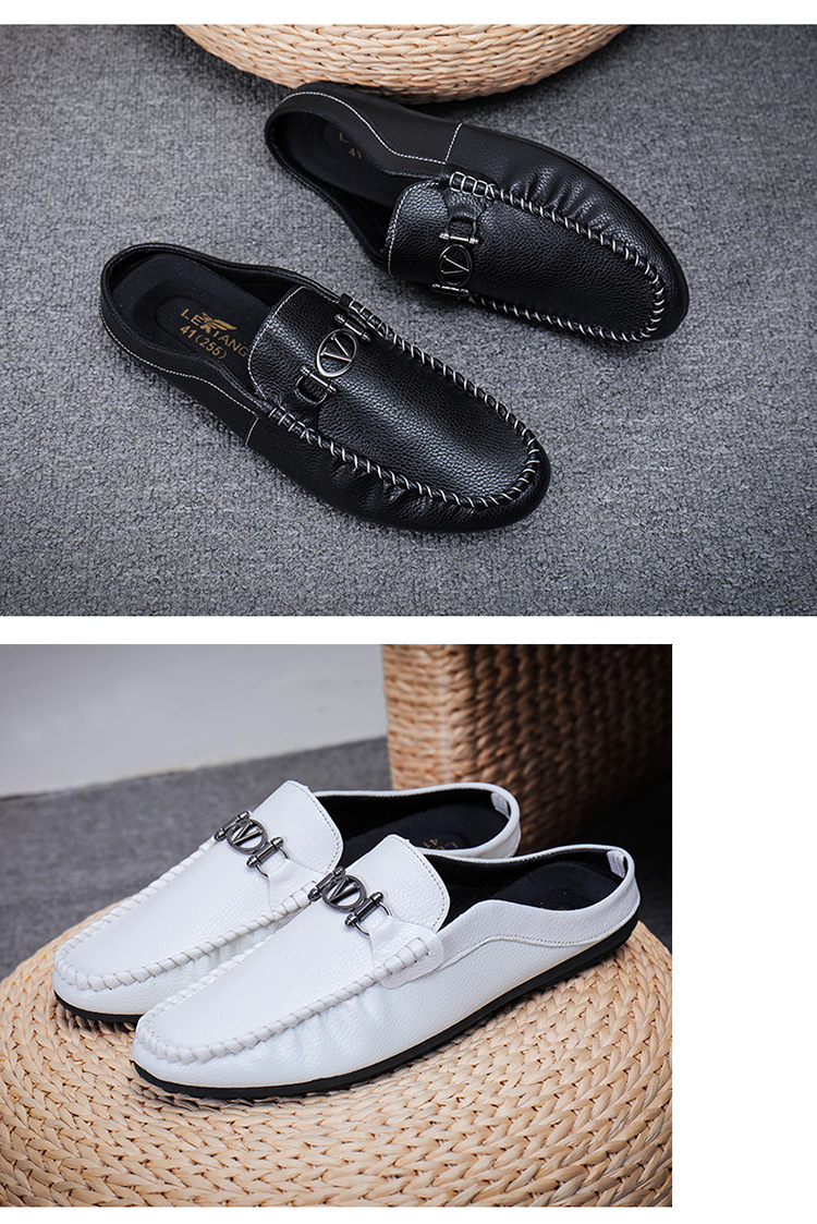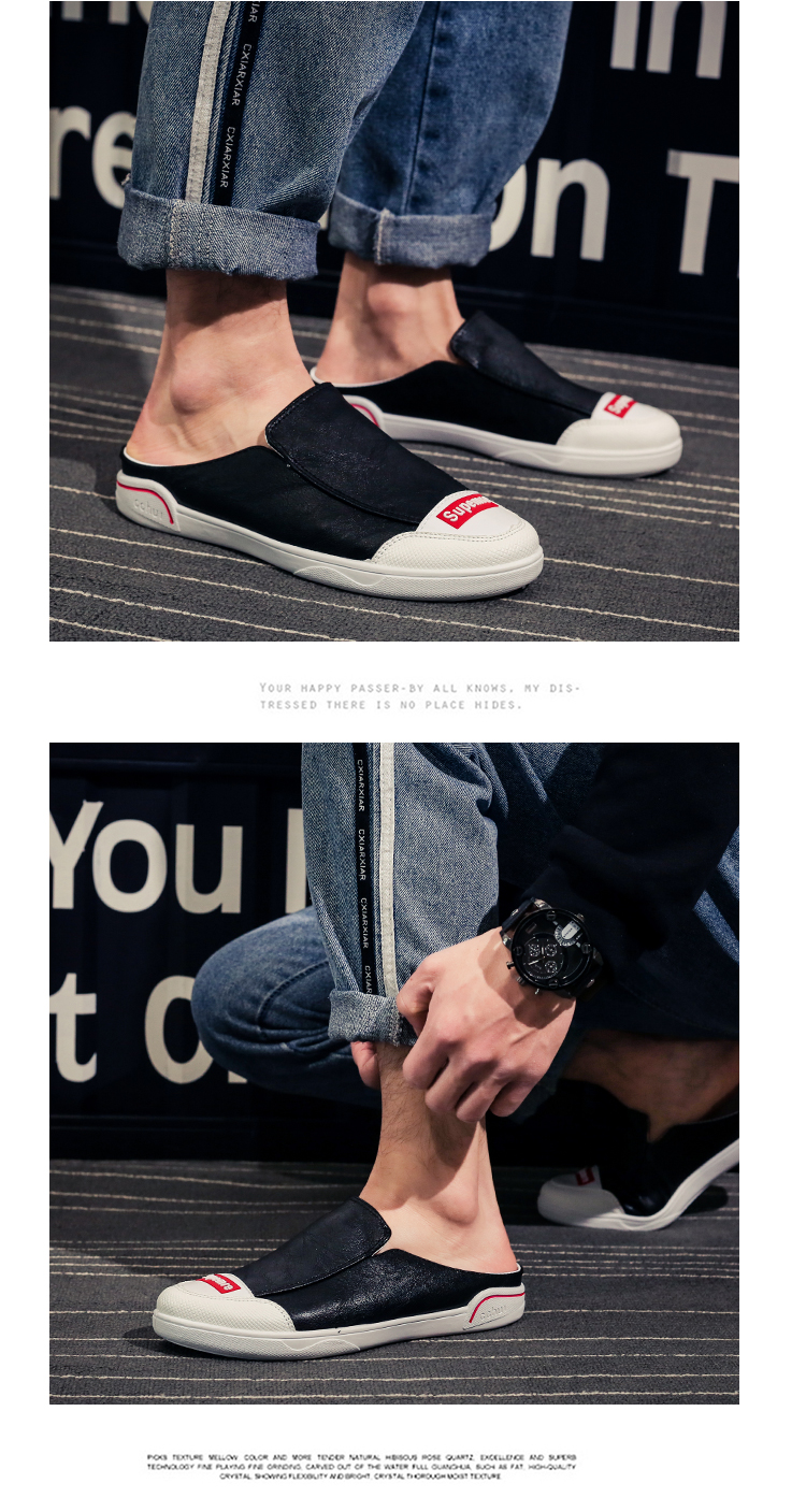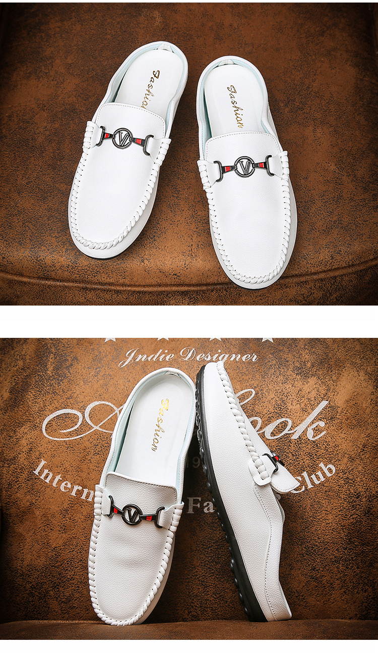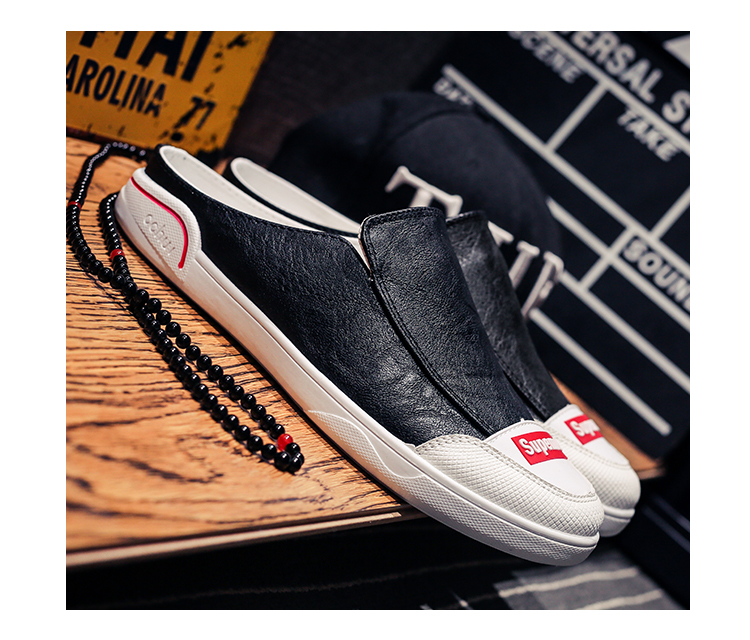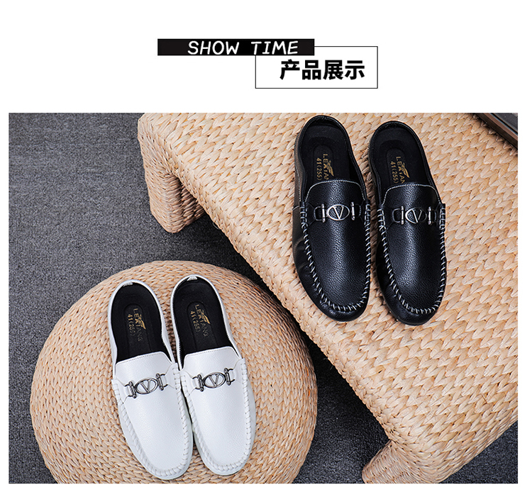 Quần áo nam mùa hè thanh niên không có gót Người Anh trêu chọc Giày Doudou Phiên bản Hàn Quốc da nửa kéo không gốc giày trắng giày da thủy triều