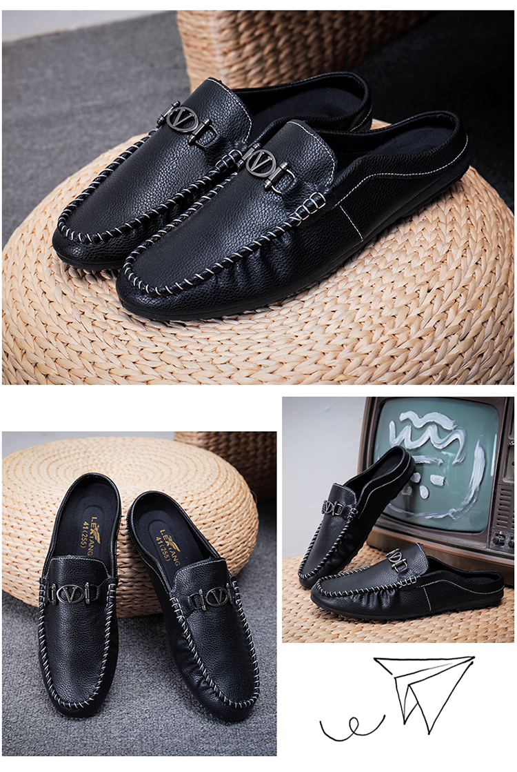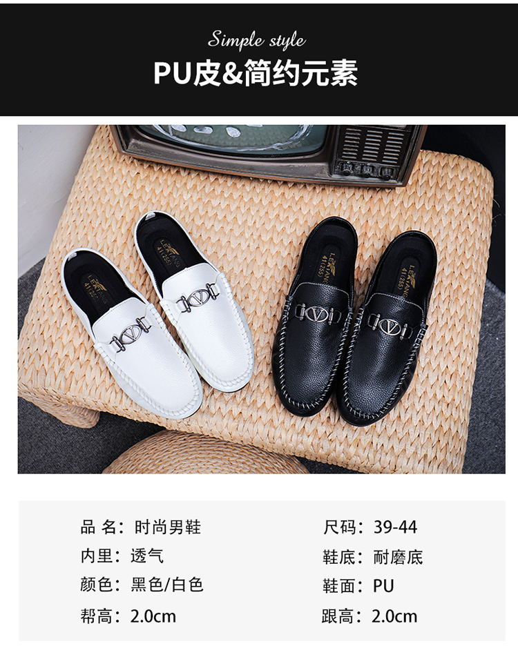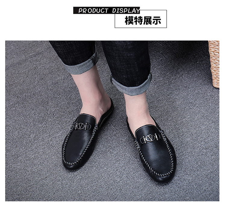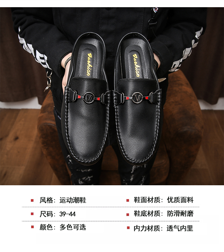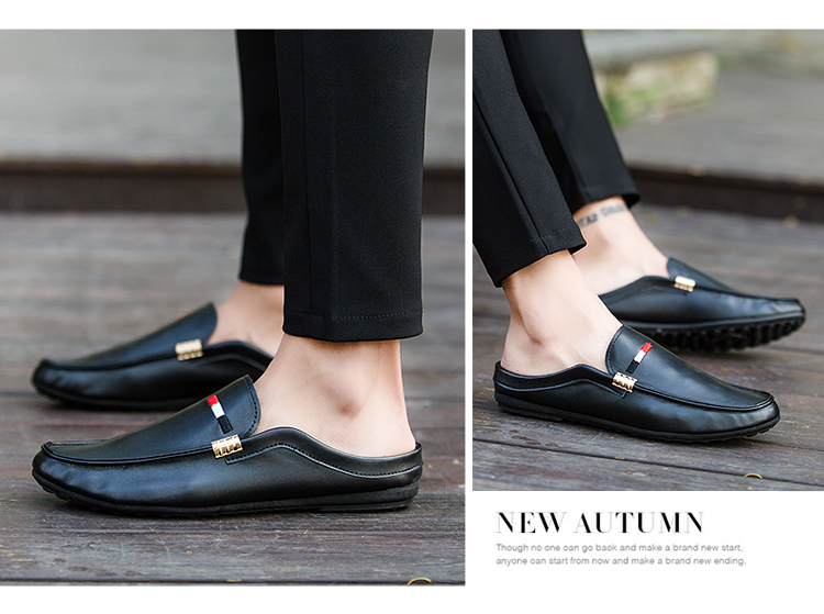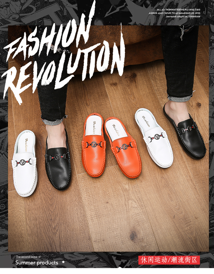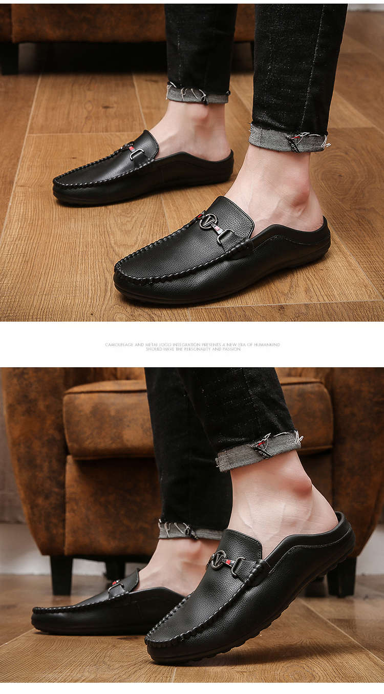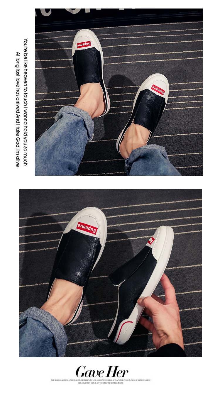 Quần áo nam mùa hè thanh niên không có gót Người Anh trêu chọc Giày Doudou Phiên bản Hàn Quốc da nửa kéo không gốc giày trắng giày da thủy triều