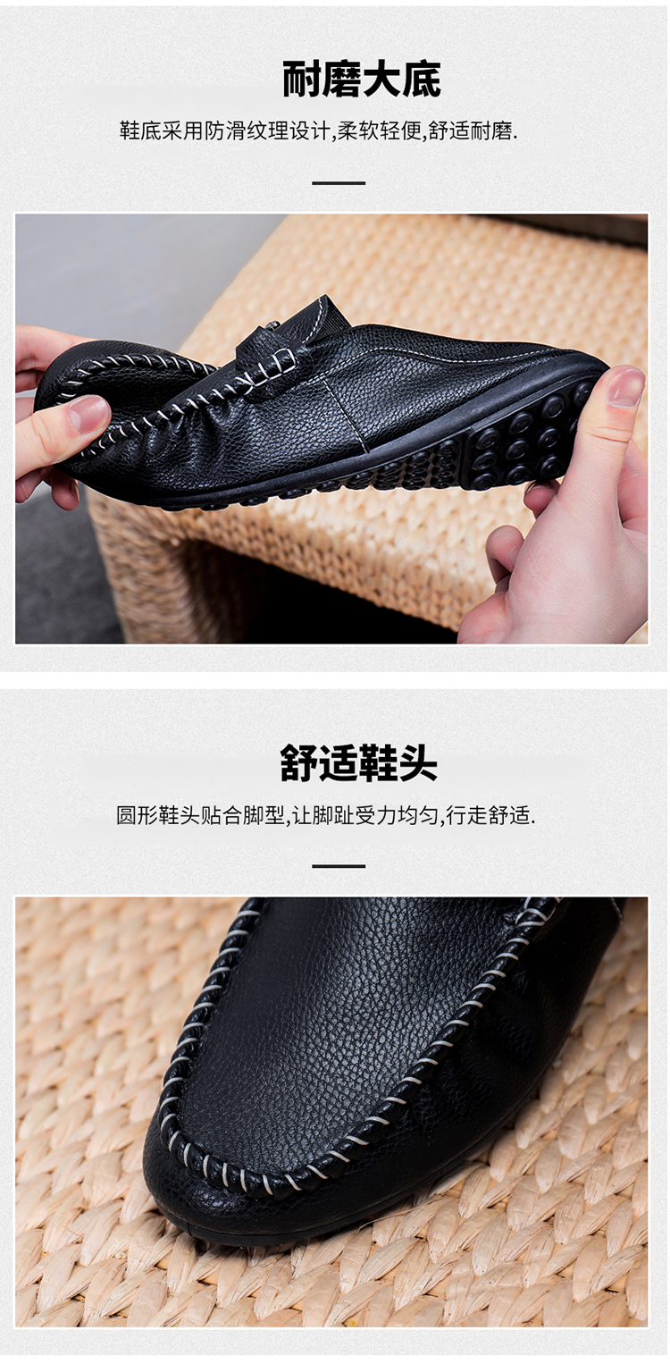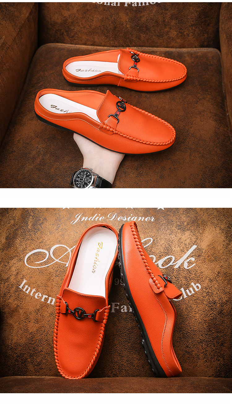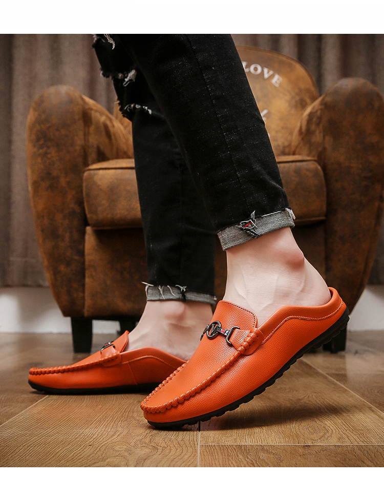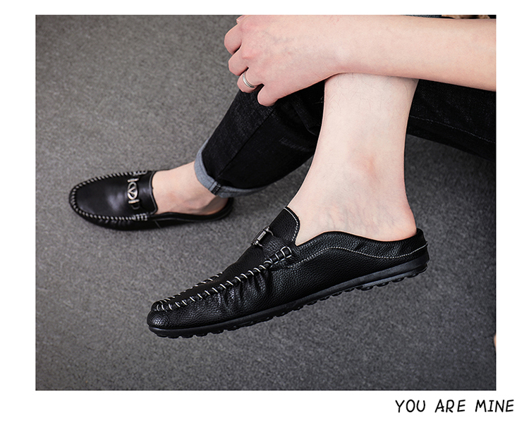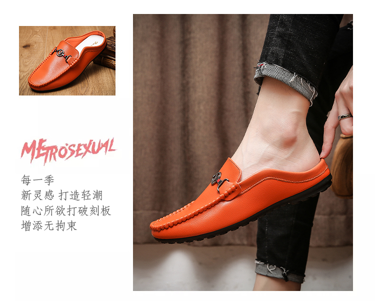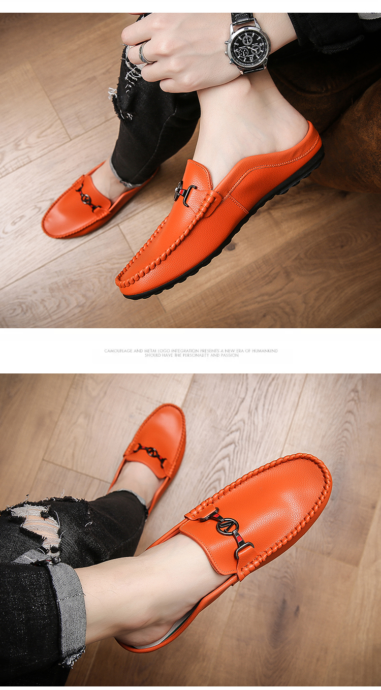 Quần áo nam mùa hè thanh niên không có gót Người Anh trêu chọc Giày Doudou Phiên bản Hàn Quốc da nửa kéo không gốc giày trắng giày da thủy triều
