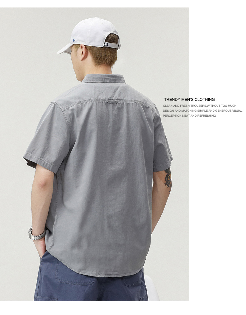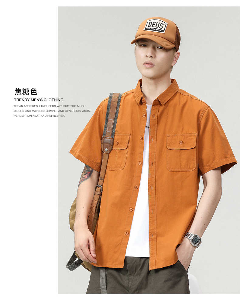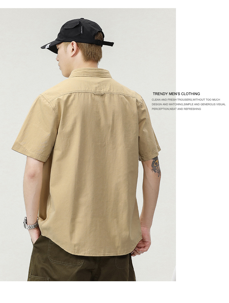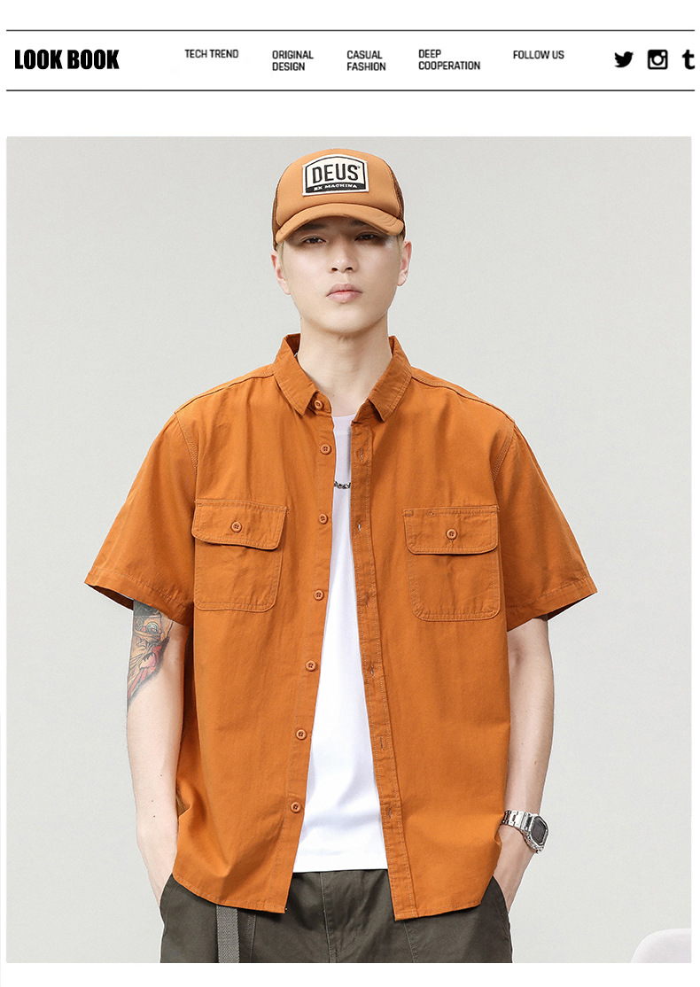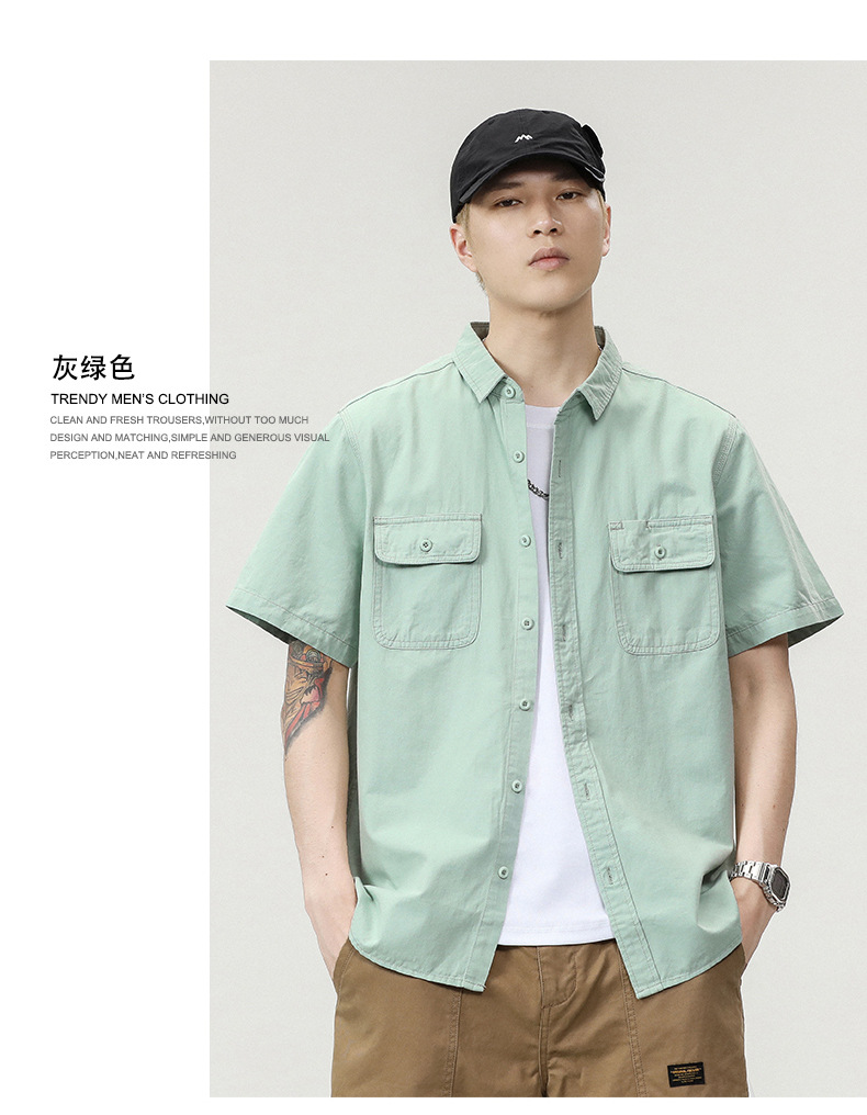 Quần áo nam Muqiu∣Áo sơ mi nam ngắn tay Mùa hè thương hiệu hợp thời trang của Mỹ Quần áo bảo hộ lao động Nhật Bản Áo sơ mi có ve áo cotton được giặt dày
