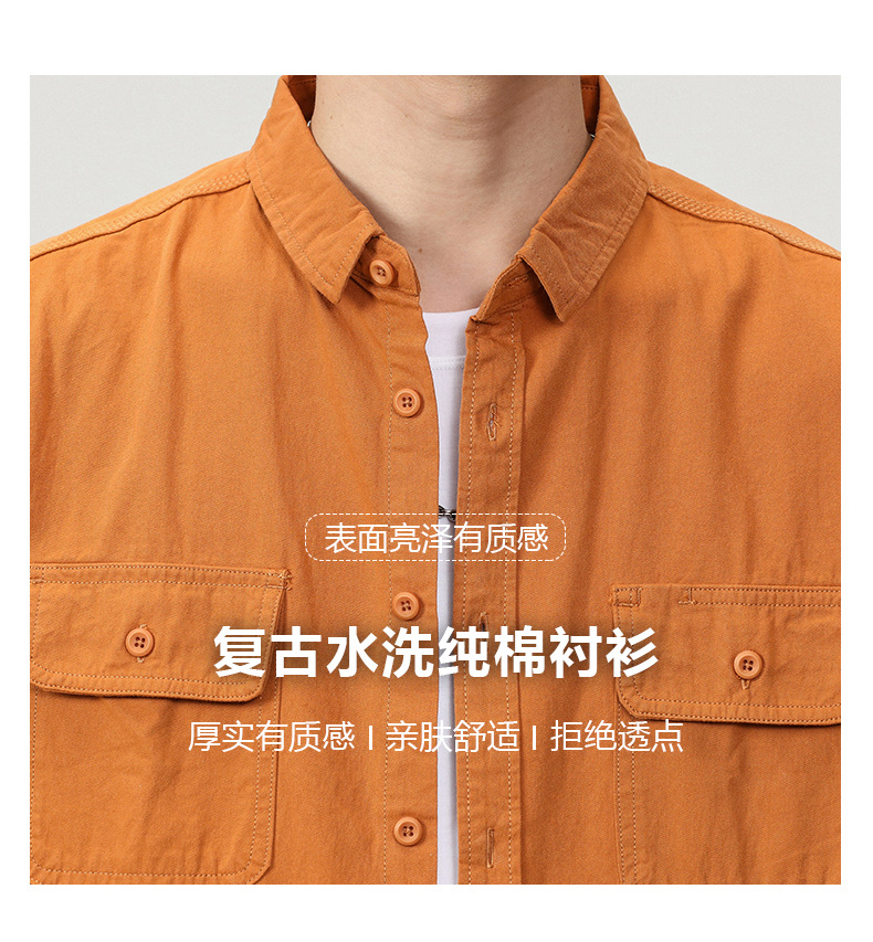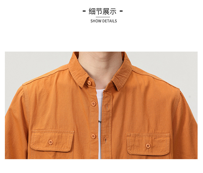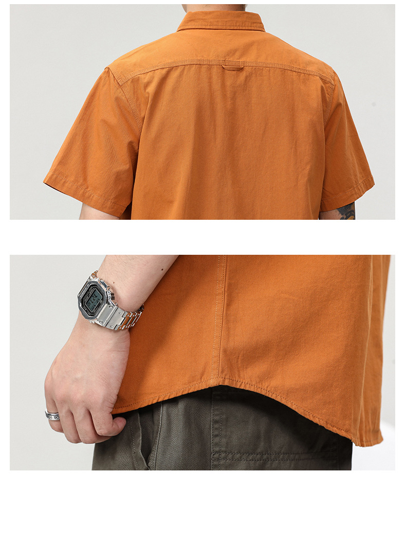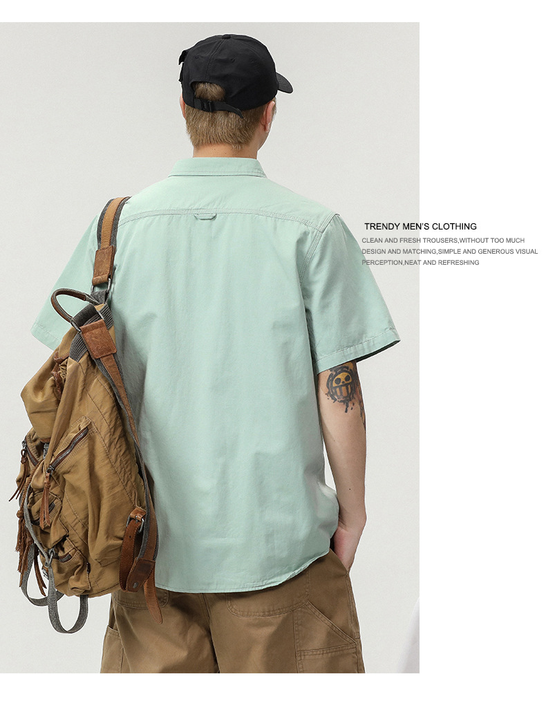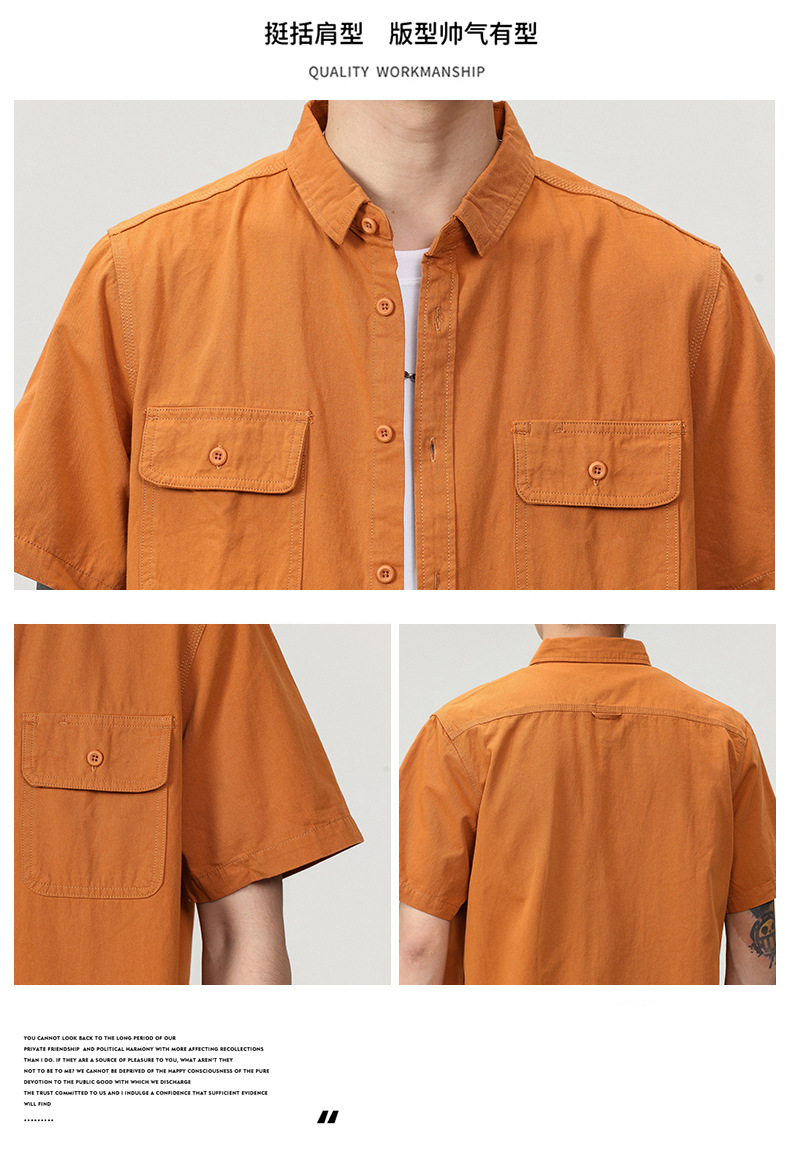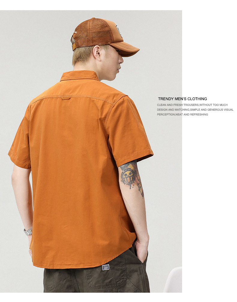 Quần áo nam Muqiu∣Áo sơ mi nam ngắn tay Mùa hè thương hiệu hợp thời trang của Mỹ Quần áo bảo hộ lao động Nhật Bản Áo sơ mi có ve áo cotton được giặt dày
