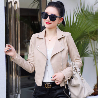 Quần áo thời trang nữ Haining ngắn áo khoác da pu mỏng phiên bản Hàn Quốc của áo khoác nhỏ đầu máy mùa thu áo khoác da mỏng giản dị