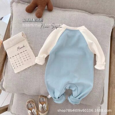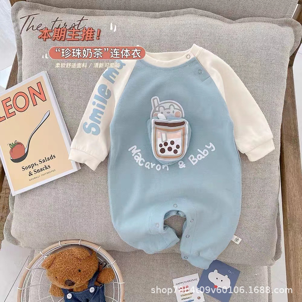 Quần áo trẻ em phong cách siêu nước ngoài quần áo xuân thu dành cho nam và nữ áo liền quần trẻ em lưới màu đỏ bông dễ thương bò quần áo đi chơi áo liền quần