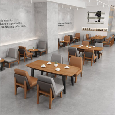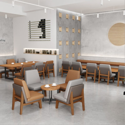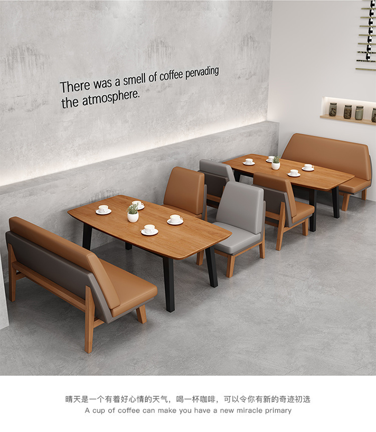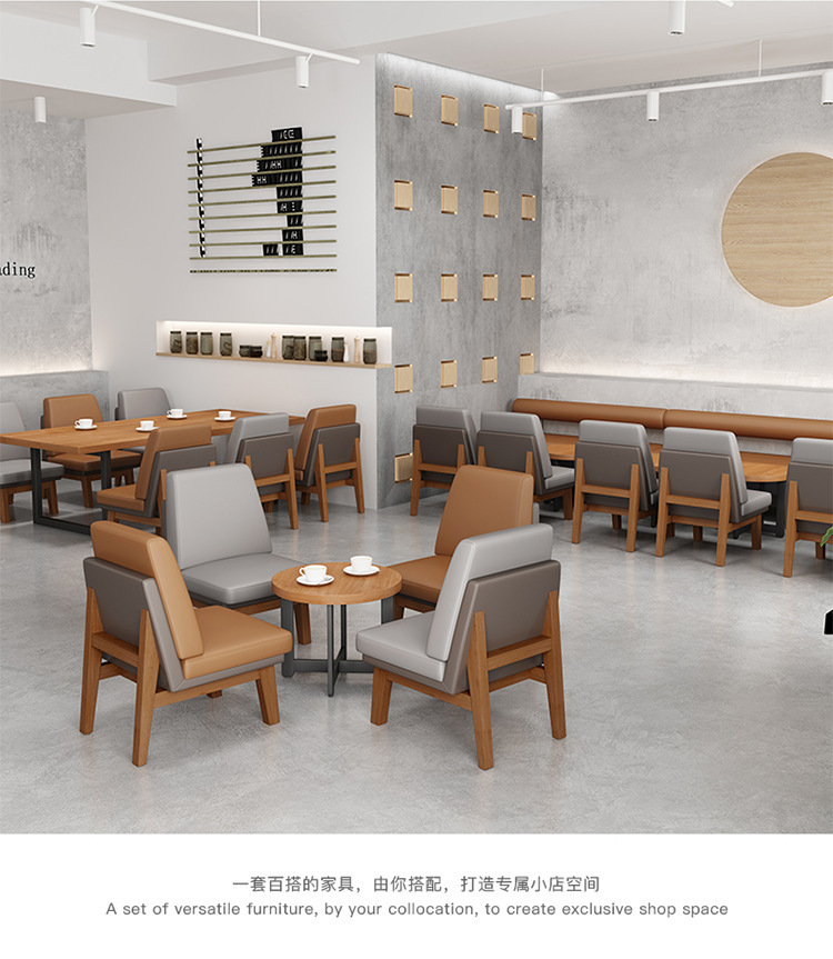 Quán cà phê bằng gỗ nguyên khối quán trà sữa nhà hàng phương tây khu vực nghỉ ngơi tiếp tân đàm phán bàn ghế sofa kết hợp đơn giản và tươi mới