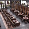 Quán cà phê thẻ đôi ghế sofa gói mềm giải trí thanh cuốn sách thương mại phục vụ bánh quán trà sữa kết hợp bàn ghế gỗ