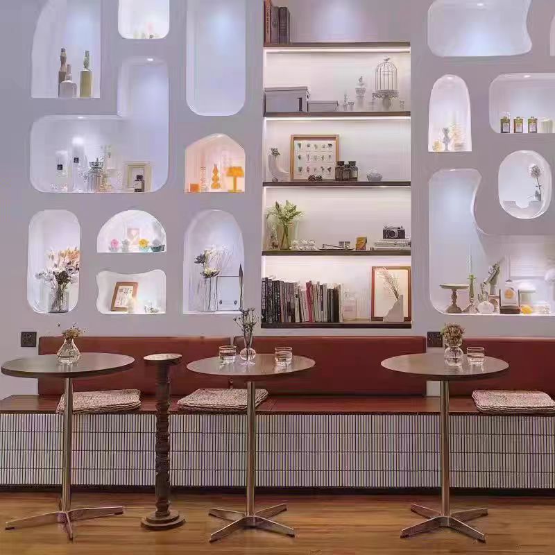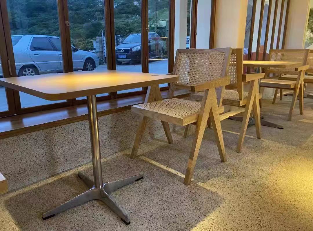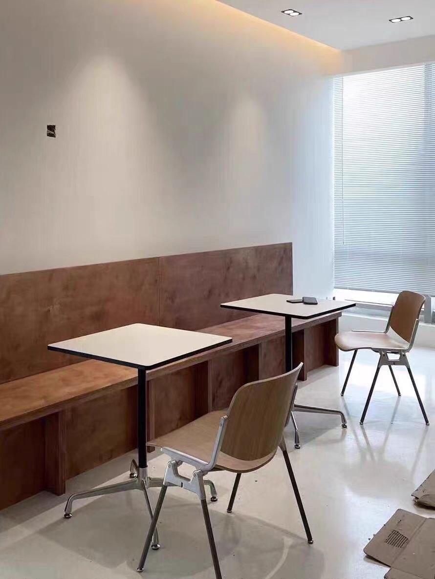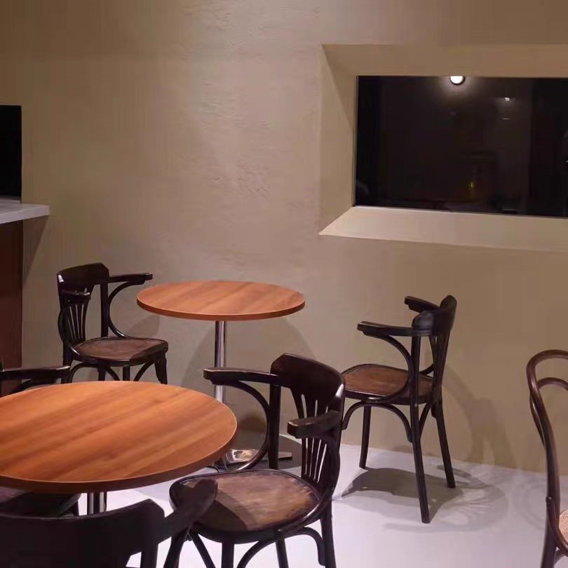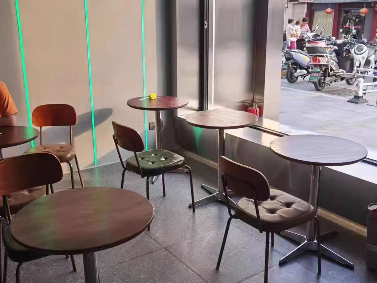 Quán cà phê tiệm bánh món tráng miệng cửa hàng bàn phục vụ nhà hàng bàn ghế gỗ nguyên khối kết hợp thanh trong suốt thép không gỉ Bàn vuông tròn nhỏ kiểu cổ điển