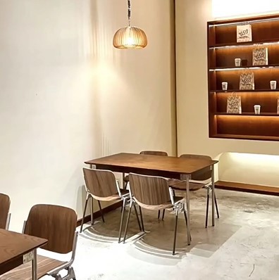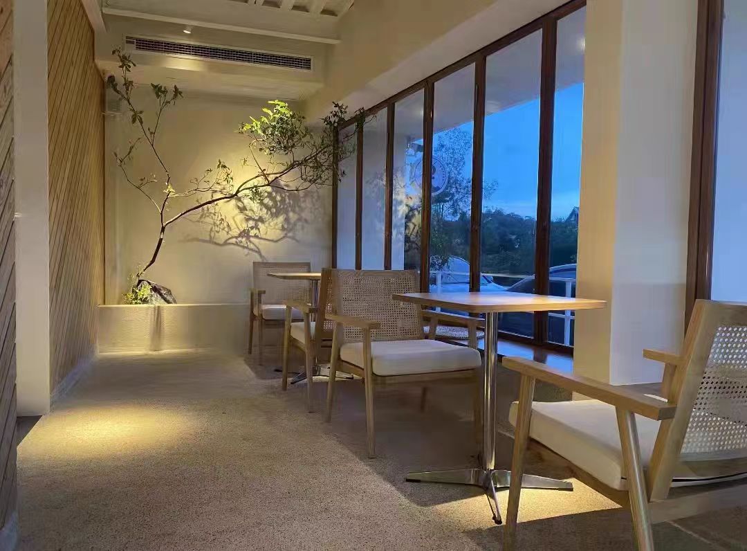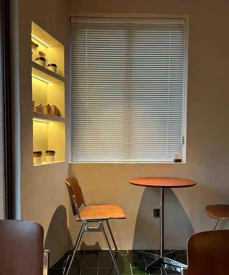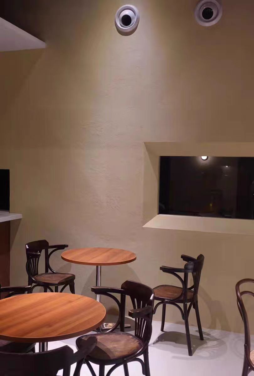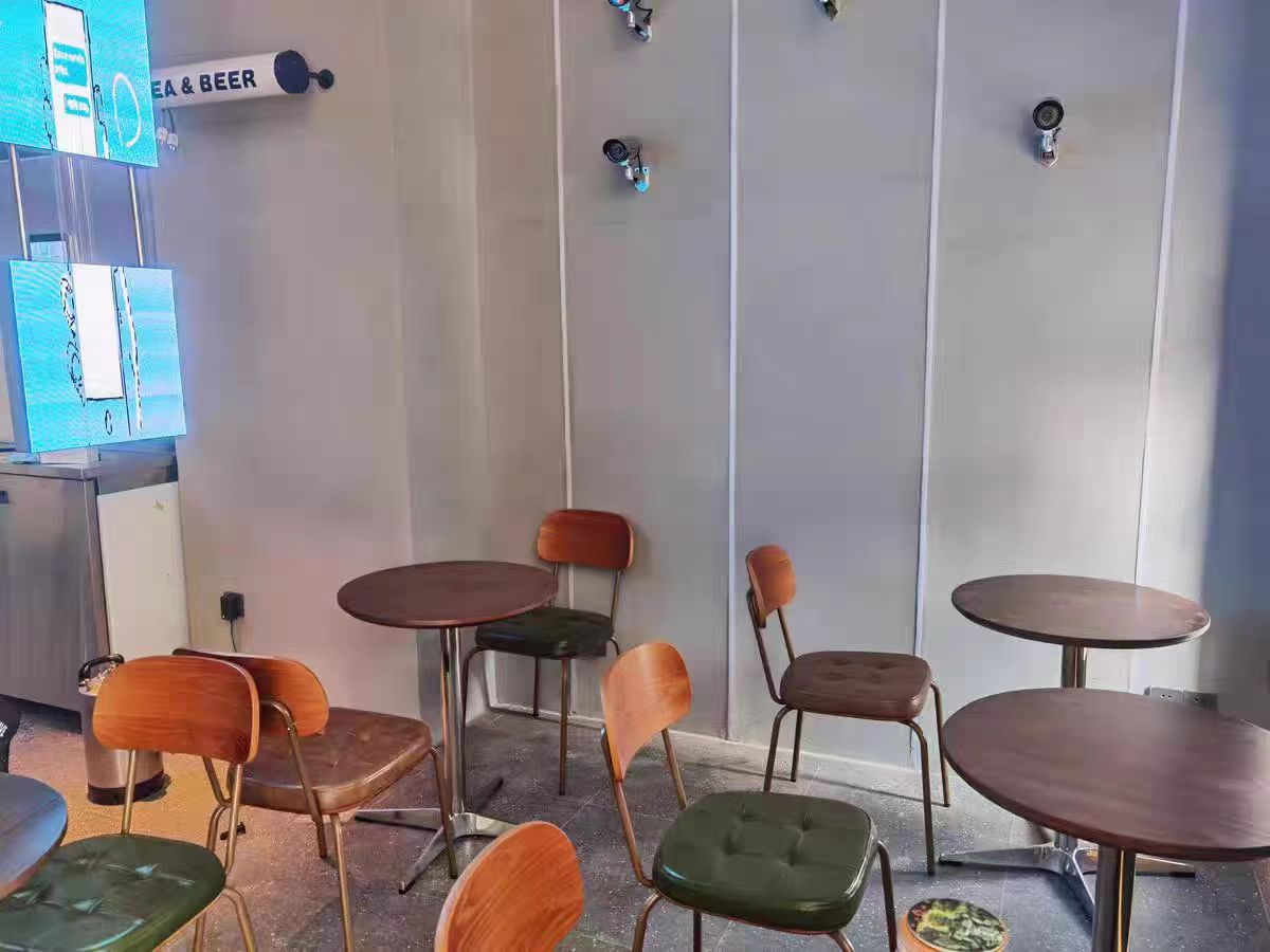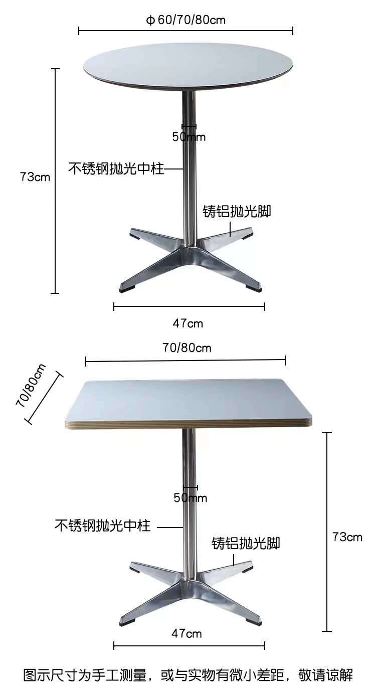Quán cà phê tiệm bánh món tráng miệng cửa hàng bàn phục vụ nhà hàng bàn ghế gỗ nguyên khối kết hợp thanh trong suốt thép không gỉ Bàn vuông tròn nhỏ kiểu cổ điển