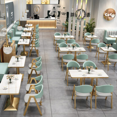 Quán trà sữa bàn ăn bàn ghế kết hợp ánh sáng sang trọng món ăn phương tây cafe sofa đơn giản bánh pizza nướng món tráng miệng gian hàng thương mại