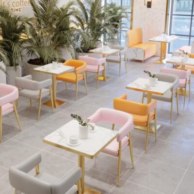 Quán trà sữa bàn ghế kết hợp đơn giản lưới màu đỏ cửa hàng tráng miệng quán cà phê thẻ ghế sofa cửa hàng bánh mì kẹp thịt đồ nội thất phòng ăn