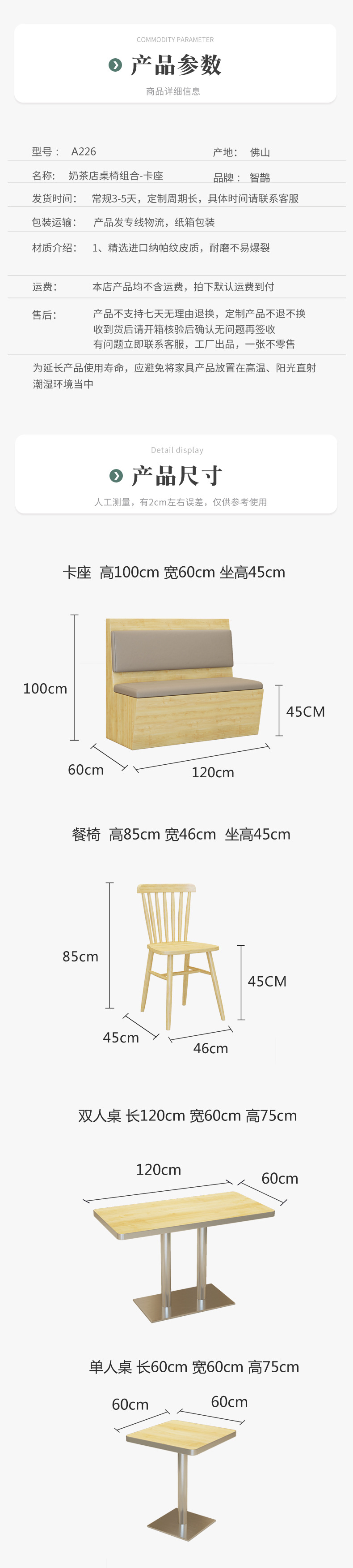 Màu sắc: xám bạc Gấp lại: Không Bằng sáng chế: Không Mô hình 3D: Không Giao hàng tận nơi: Không Dịch vụ lắp đặt tận nơi: Không Người nộp thuế chung: Không Chức năng: Tháo rời Chất liệu: Tấm Kích thước: Ghế đôi 1200 /1200* Bàn dài 600*750 chân inox/bàn vuông 600*600*750 chân bàn inox/ghế ăn/ghế ăn Không gian: thương mại Đối tượng áp dụng: người lớn tuổi Phong cách: hiện đại, đơn giản. Quý khách có nhu cầu mua Bàn ghế quán café nhập khẩu vui lòng liên hệ với chúng tôi để được tư vấn hỗ trợ. Dịch vụ mua hàng Trung Quốc sẽ hỗ trợ quý khách mua hàng từ nhà cung cấp và giao tới tận tay quý khách hàng.