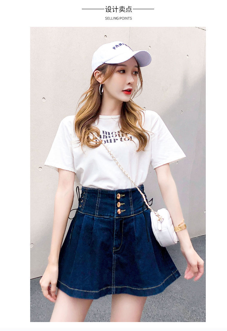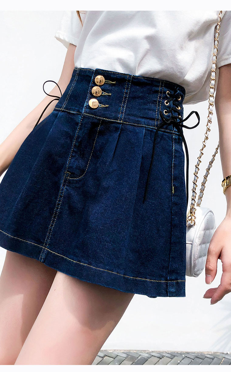 Quần váy ngắn denim cạp cao 2022 mùa hè phong cách mới mỏng và mỏng váy xếp nếp một đường xếp nếp che phủ váy ô đáy quần