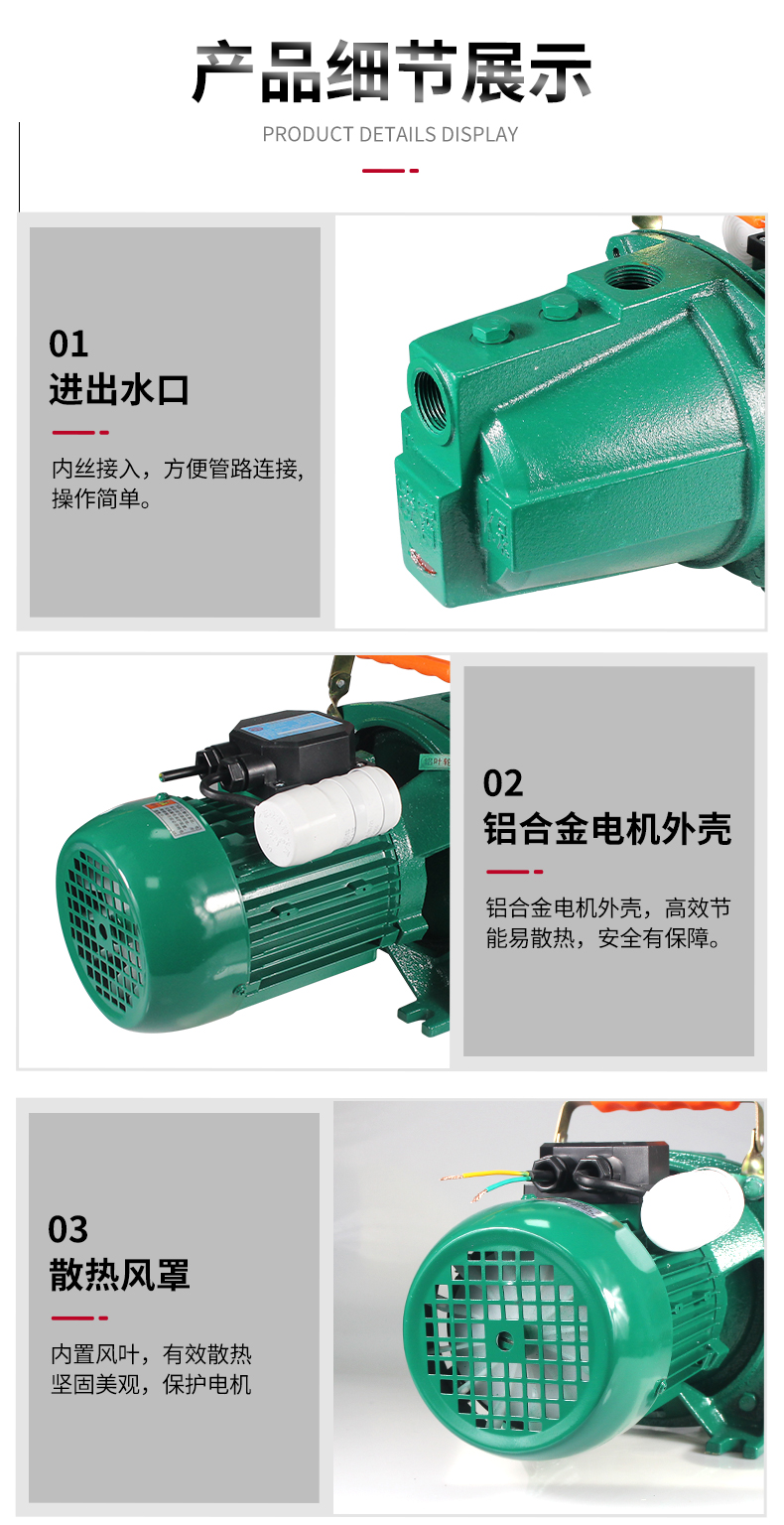 Thương hiệu: Khác Vật liệu thân bơm: gang Thông số kỹ thuật: JET100 (cánh quạt bằng nhôm) 750W nguyên bản/JET100 (cánh quạt bằng thép không gỉ) 750W nguyên bản/JET100 (cánh quạt bằng đồng) 750W nguyên bản/JET150 (cánh quạt bằng nhôm) 1000W nguyên bản/JET150 (cánh quạt bằng thép không gỉ) ) Model gốc 1000W/JET150 (cánh quạt bằng đồng) Model gốc 1000W/JET100 (cánh quạt bằng thép không gỉ) Model tự động 750W/JET150 (cánh quạt bằng thép không gỉ) Model tự động 1000W/JET150 (cánh quạt bằng thép không gỉ) Model tự động 1000W :10