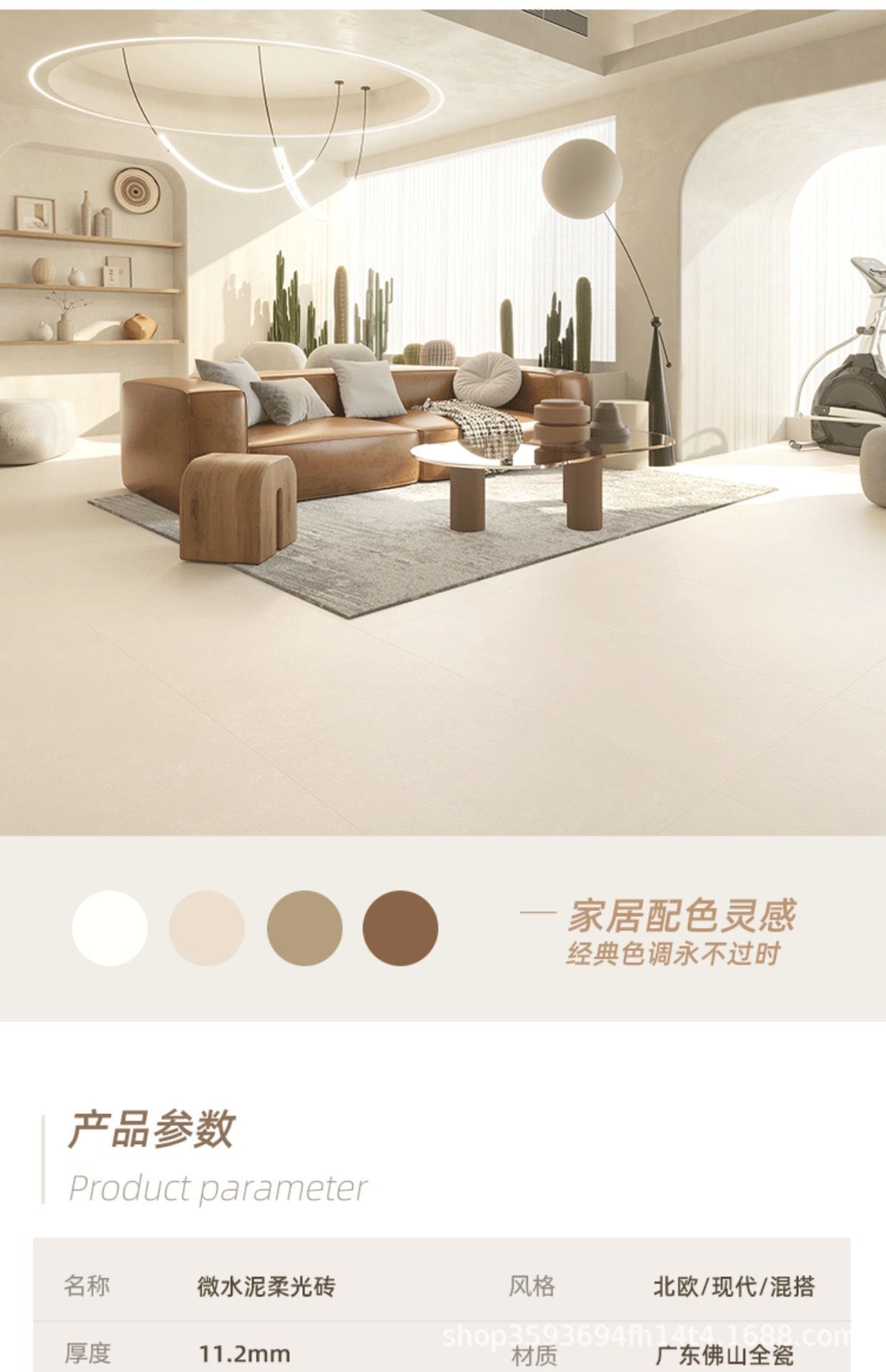 Quảng Đông Phật Sơn 7501500 vi xi măng sữa màu trắng sữa màu vàng gạch trơn da men gạch nhẹ màu kem gạch lát sàn gió