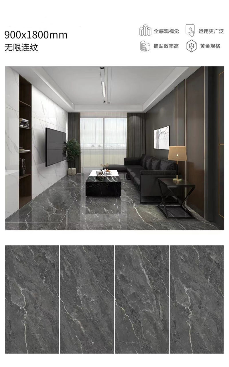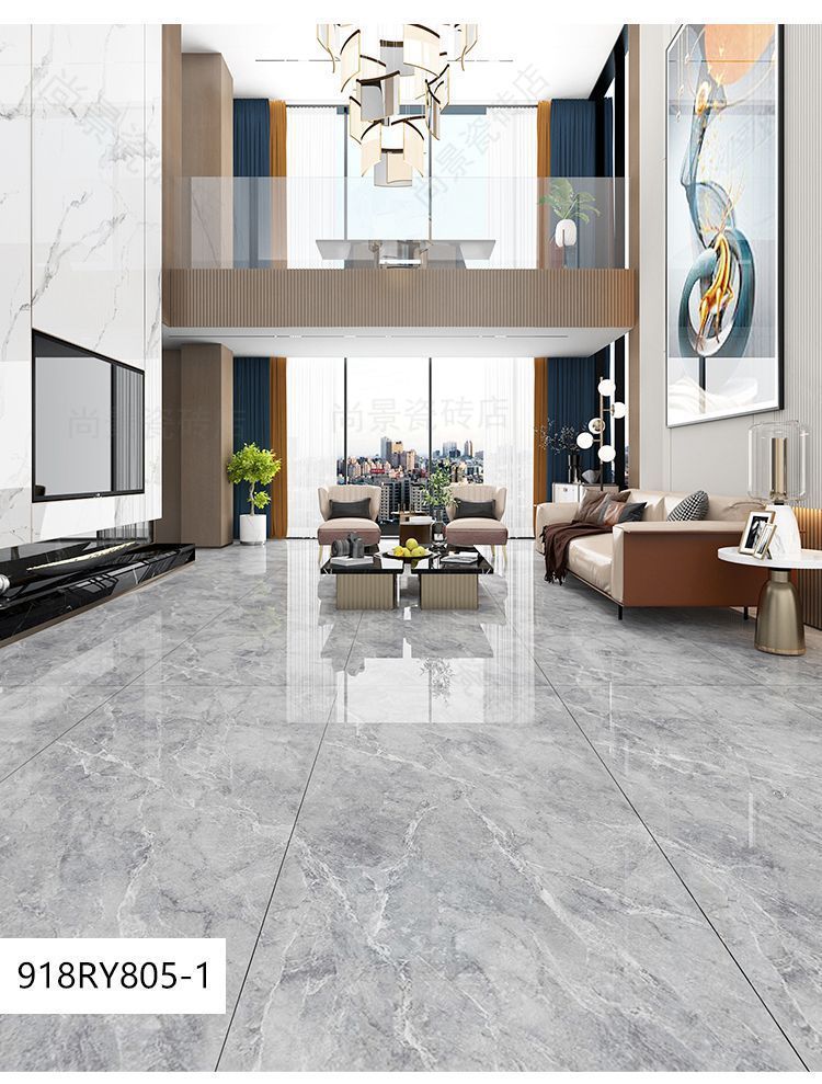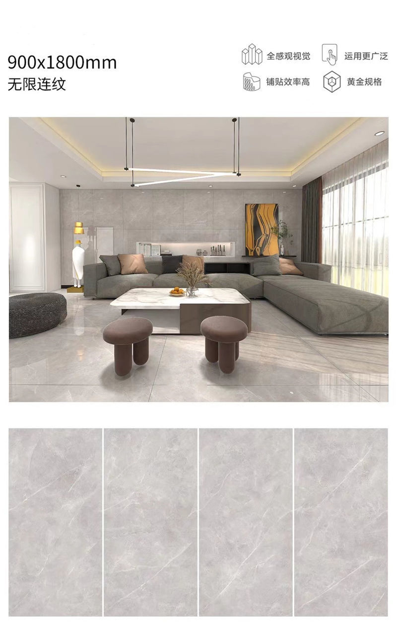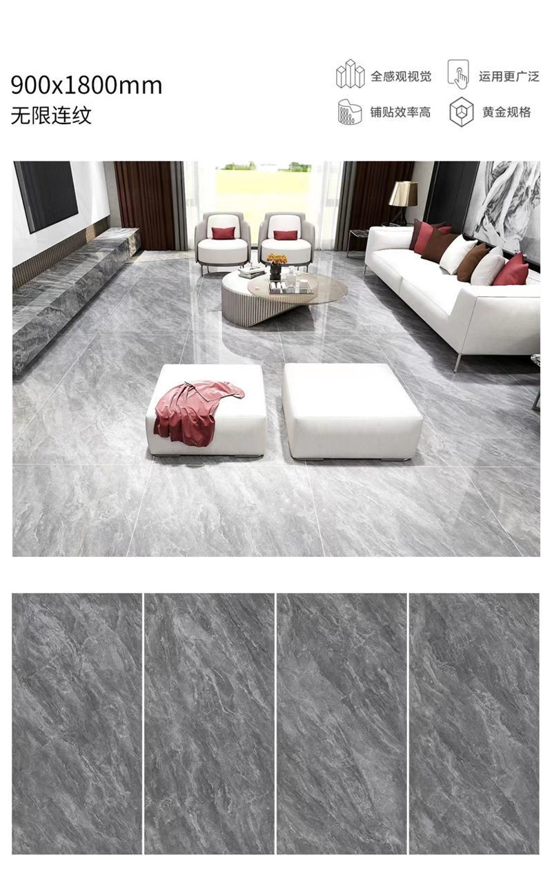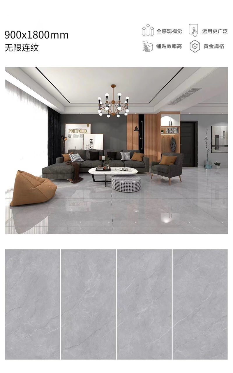 Quảng Đông Phật Sơn 9001800 gạch lát sàn phòng khách tấm lớn với gạch lát sàn chống trượt bằng đá cẩm thạch toàn thân màu xám