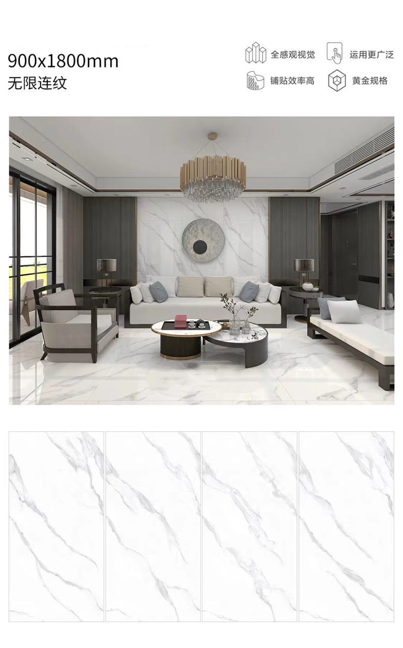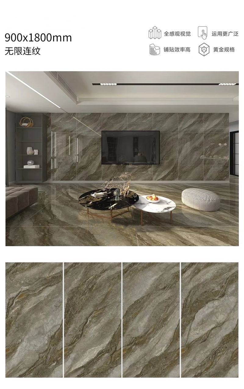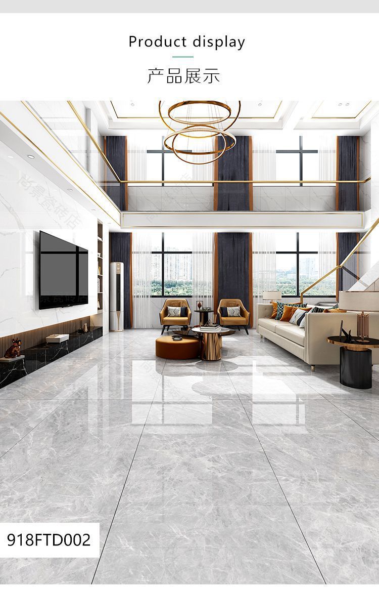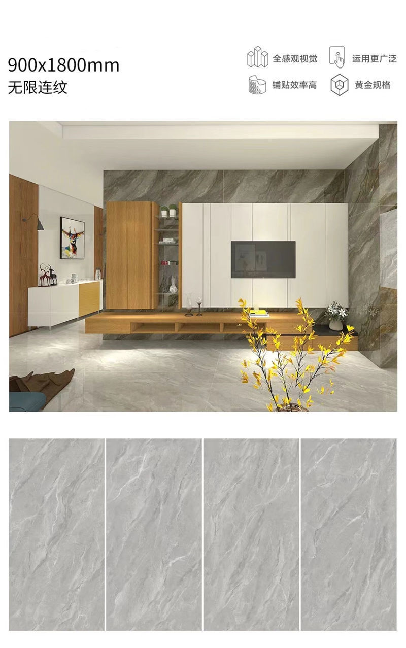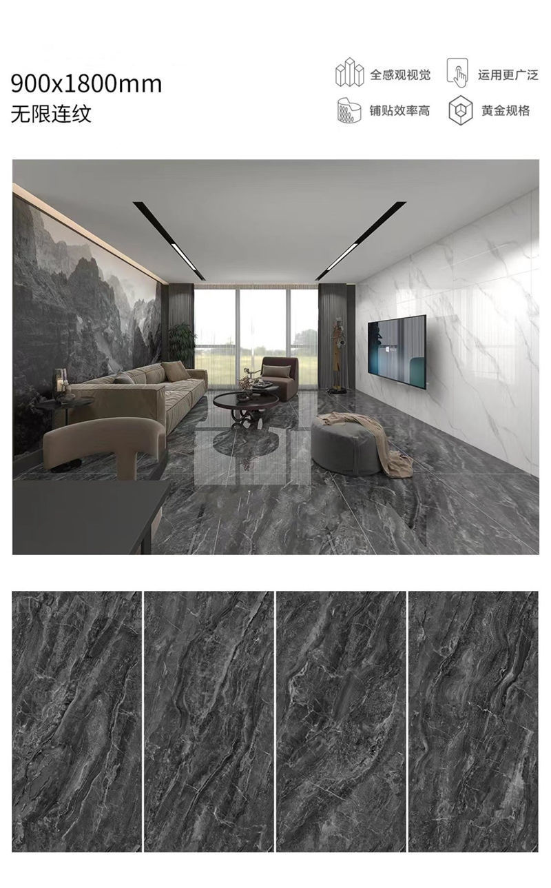 Quảng Đông Phật Sơn 9001800 gạch lát sàn phòng khách tấm lớn với gạch lát sàn chống trượt bằng đá cẩm thạch toàn thân màu xám