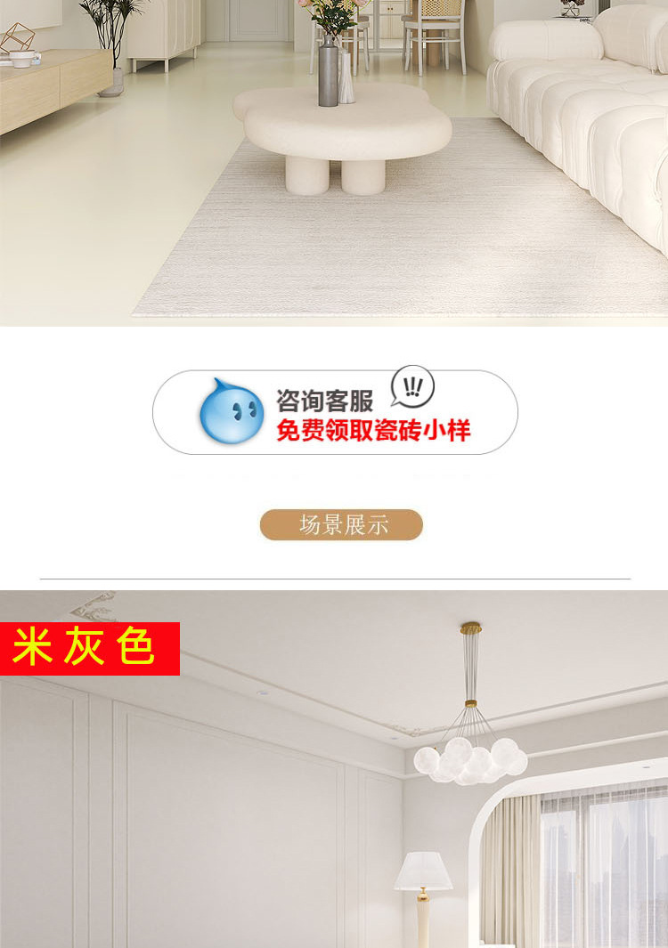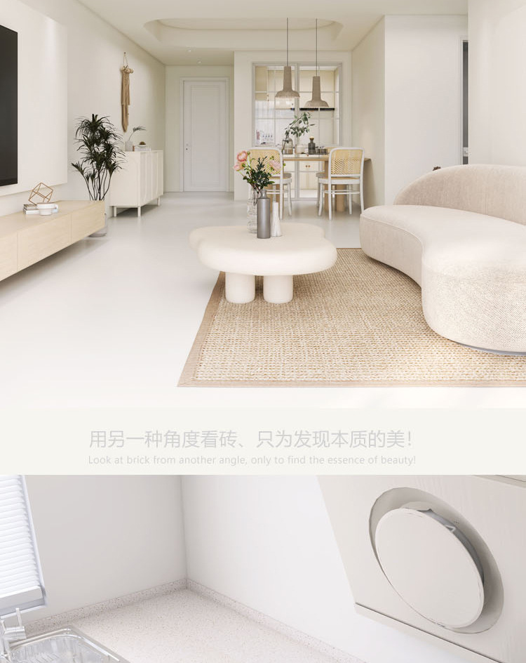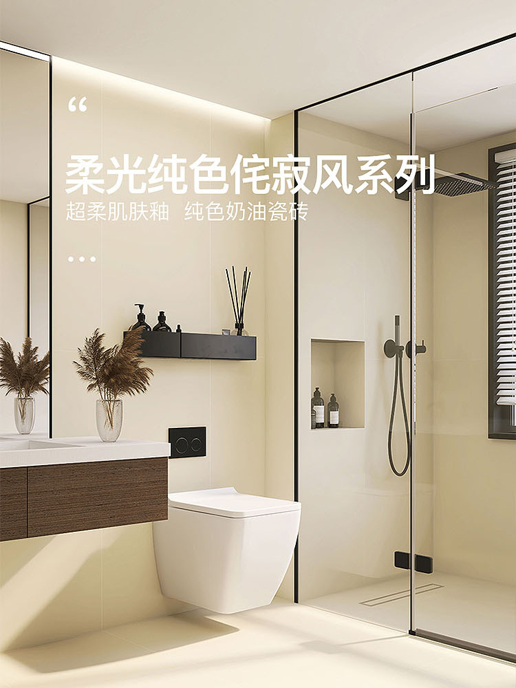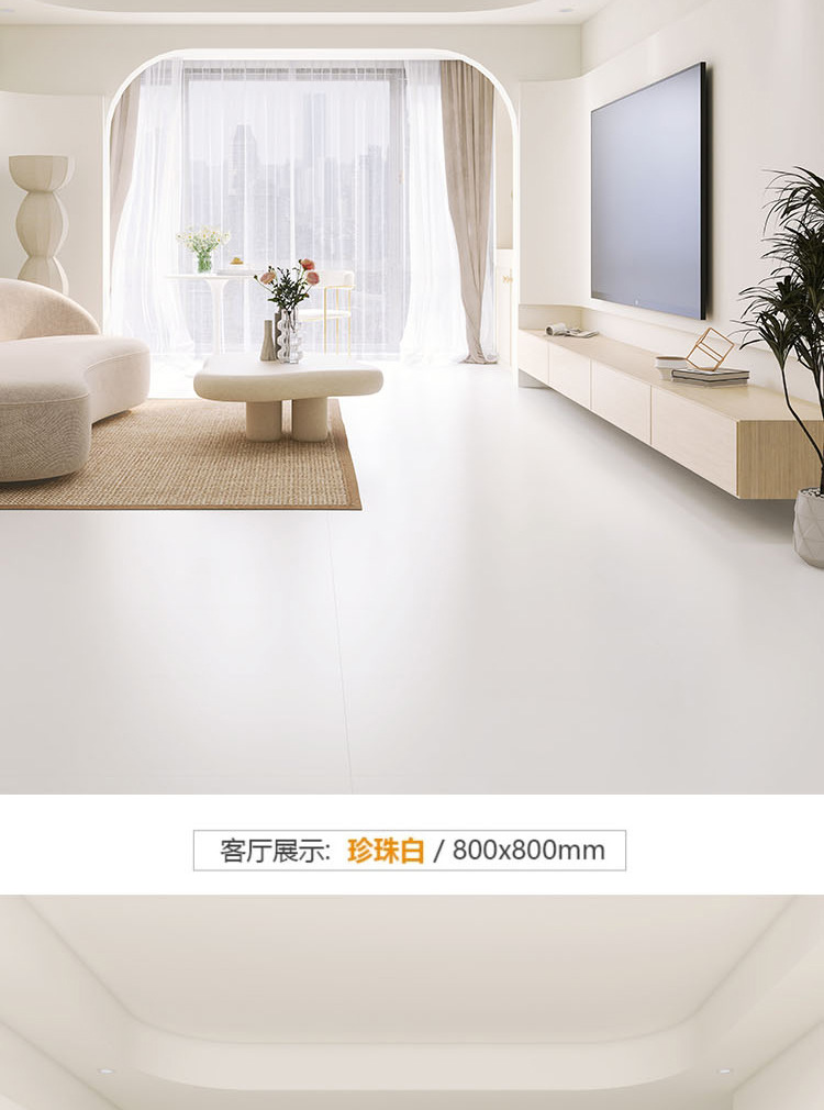 Quảng Đông Phật Sơn gạch lát nền da men bóng nhẹ lát sàn 800×800 vi xi măng gạch phòng tắm màu trắng kem