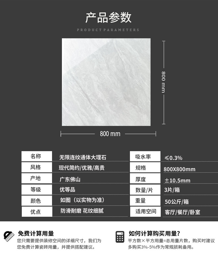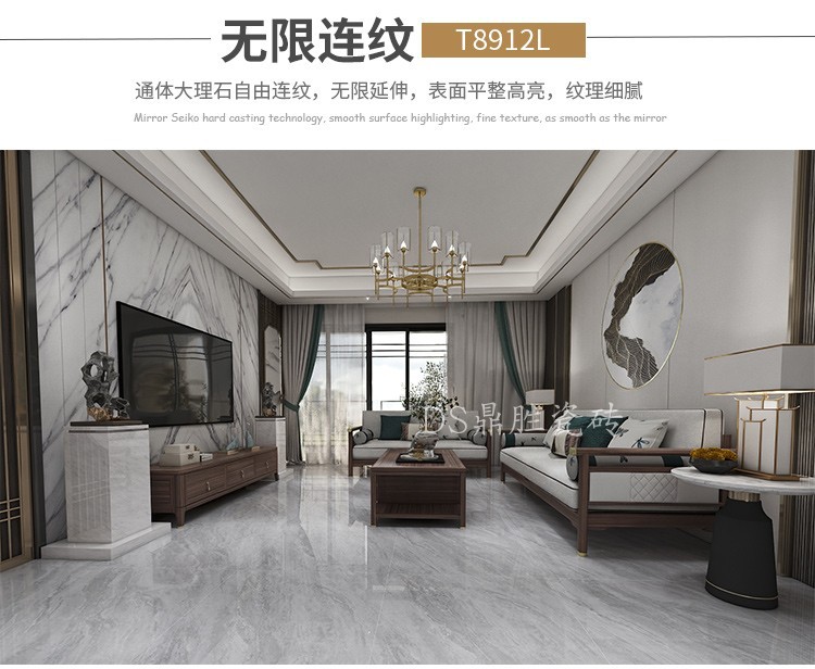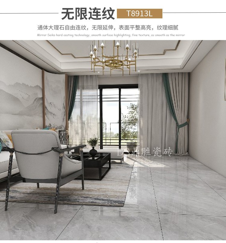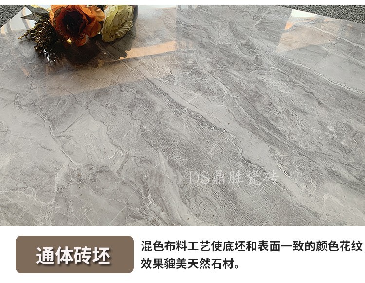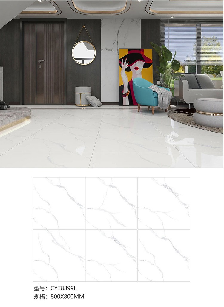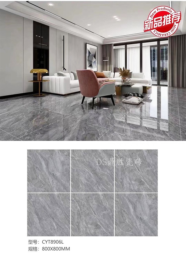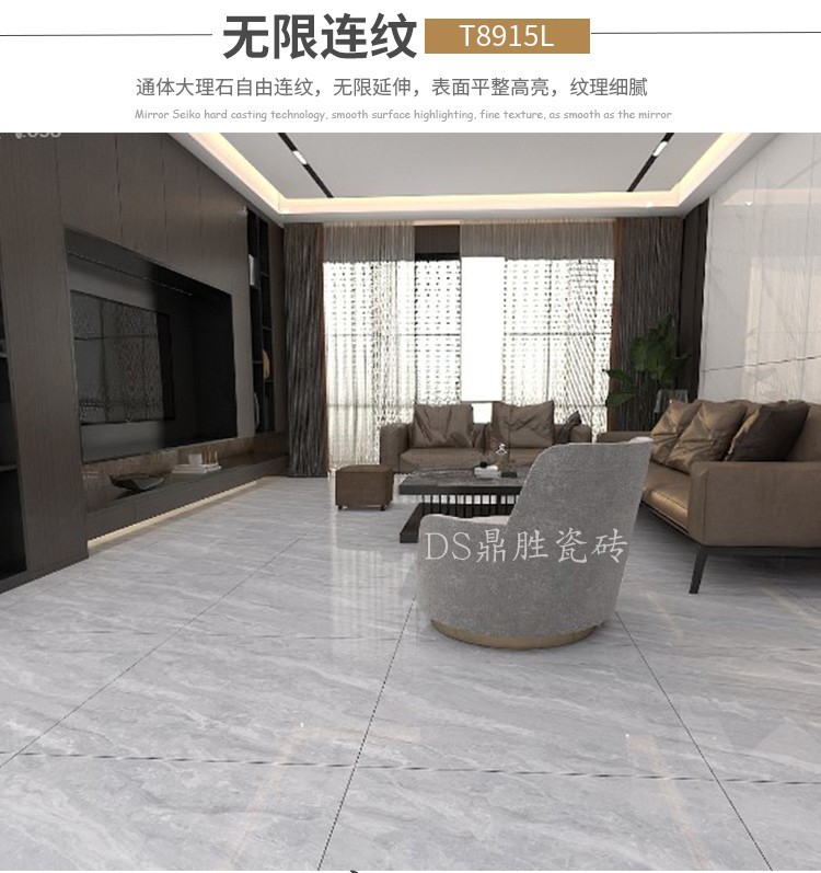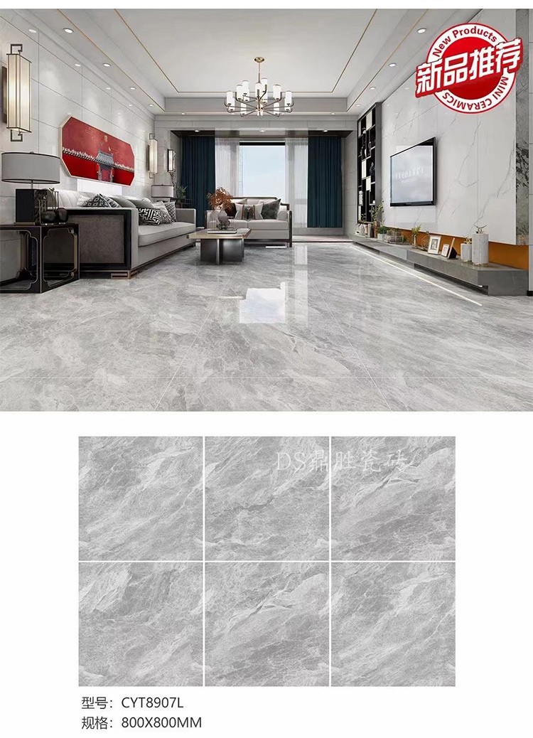 Quảng Đông sản xuất gạch đá cẩm thạch toàn thân hạt liên tục 800×800 gạch lát sàn phòng khách tối giản hiện đại theo phong cách Trung Quốc mới