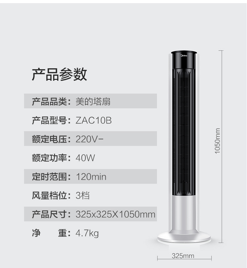Quạt điện Midea quạt tháp không lá quạt nhà quạt sàn đứng quạt máy tính để bàn lắc đầu quạt ký túc xá ZAC10B