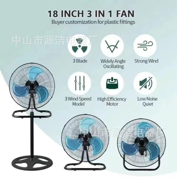 Quạt điện xuyên biên giới 18 inch quạt công nghiệp công suất cao ngoại thương Quạt ba trong một treo tường quạt sàn lắc đầu phê duyệt nhà sản xuất