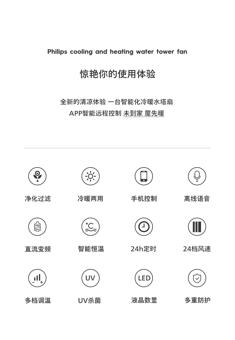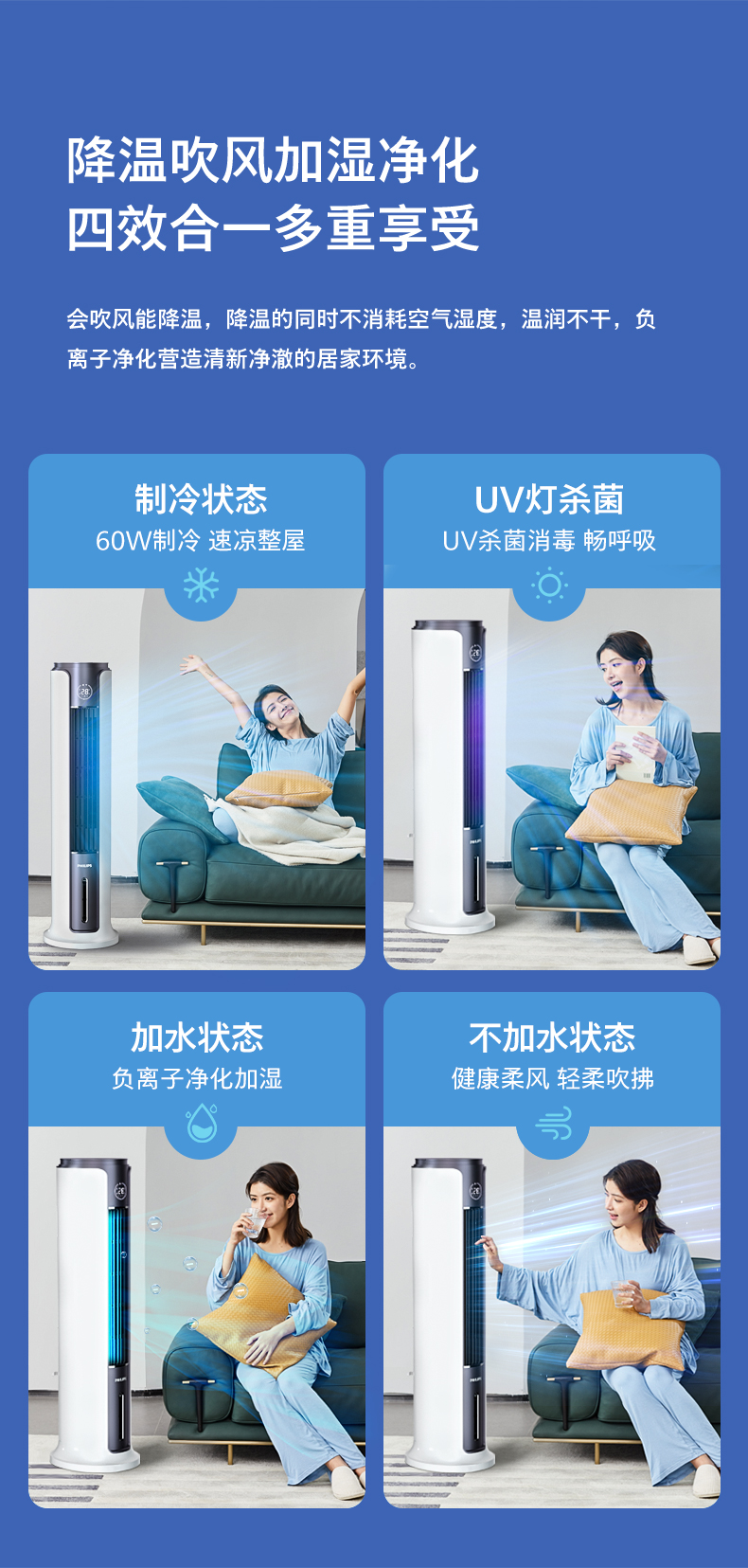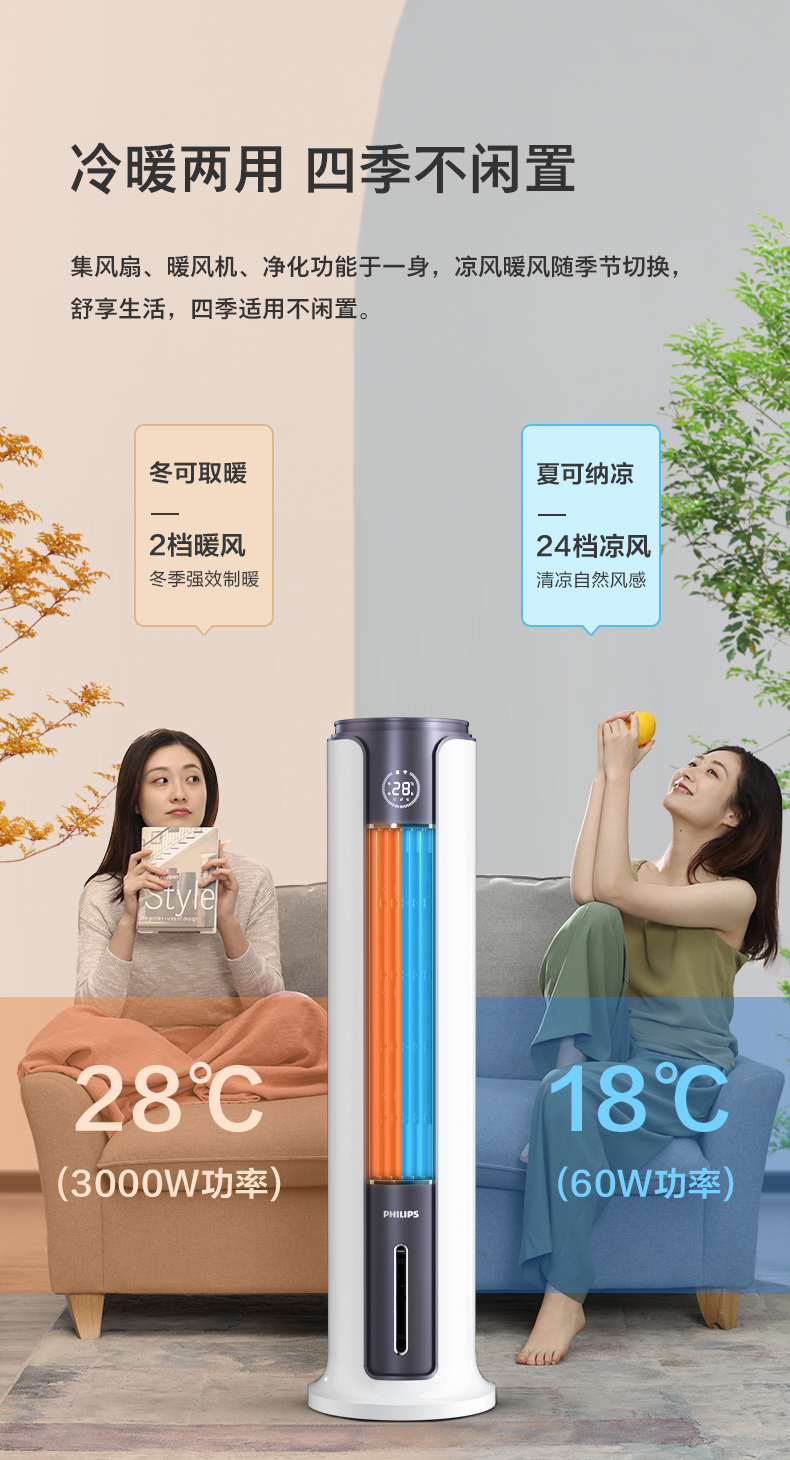 Quạt điều hòa Philips sưởi ấm và làm mát Máy làm mát không khí kép Máy điều hòa không khí gia đình Quạt làm mát khử trùng ion âm nhỏ UV