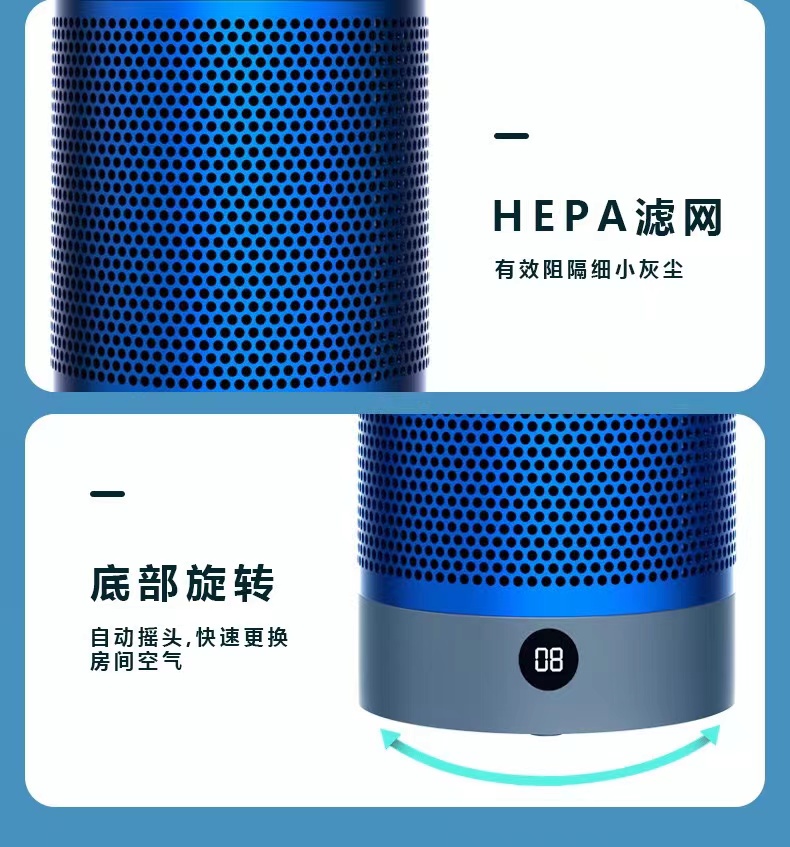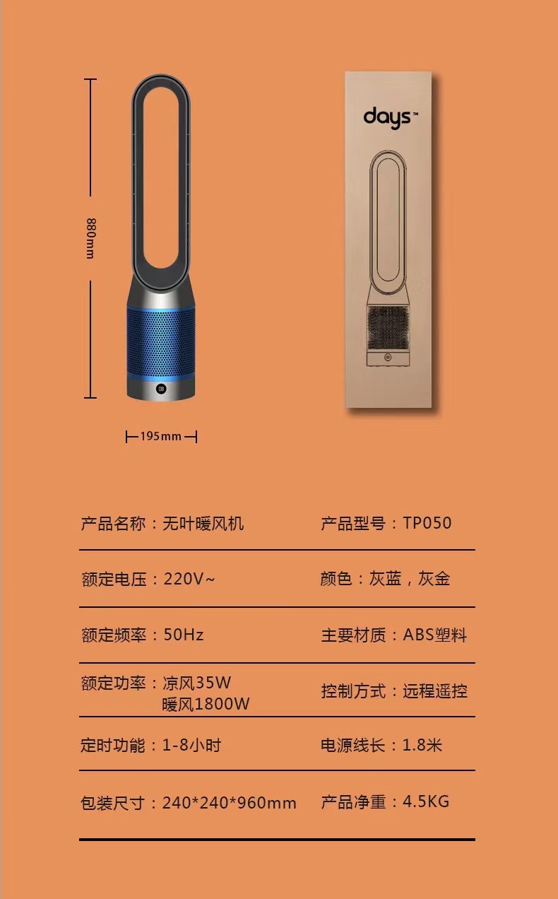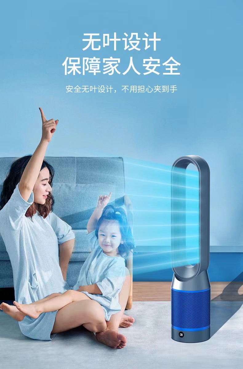 Quạt không cánh an toàn của Đức để làm mát và sưởi ấm Máy tính để bàn 110V220V để bàn thanh lọc nhà cửa điều khiển từ xa thời gian lắc đầu