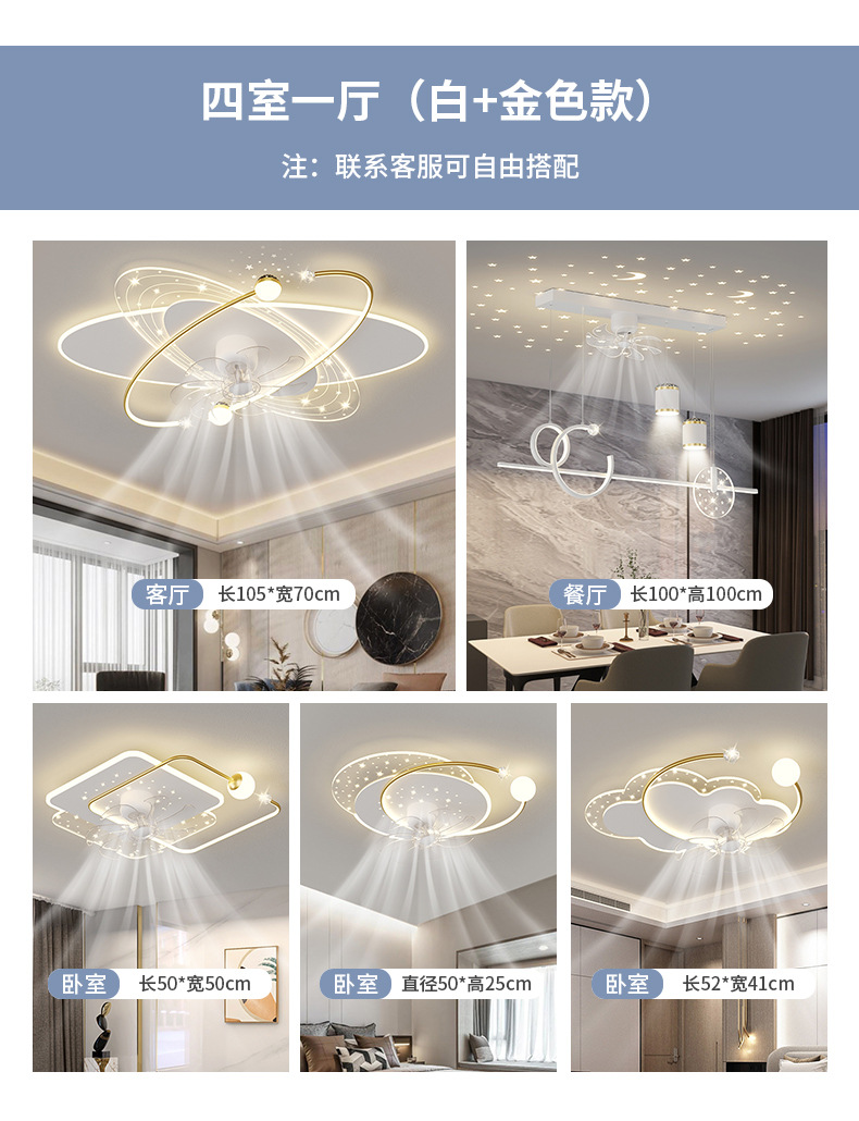 Quạt phòng khách đèn 2023 sáng tạo mới tần số chuyển đổi quạt trần hiện đại im lặng lắc đầu phòng ngủ quạt đèn