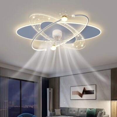 Quạt phòng khách đèn 2023 sáng tạo mới tần số chuyển đổi quạt trần hiện đại im lặng lắc đầu phòng ngủ quạt đèn