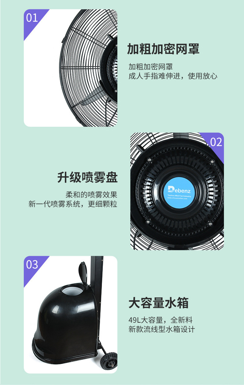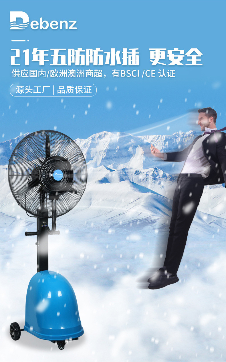 Quạt phun công nghiệp bán buôn quạt phun nước làm mát bằng nước ngoài trời quạt lắc nhà xưởng thương mại tạo ẩm quạt sàn công suất cao