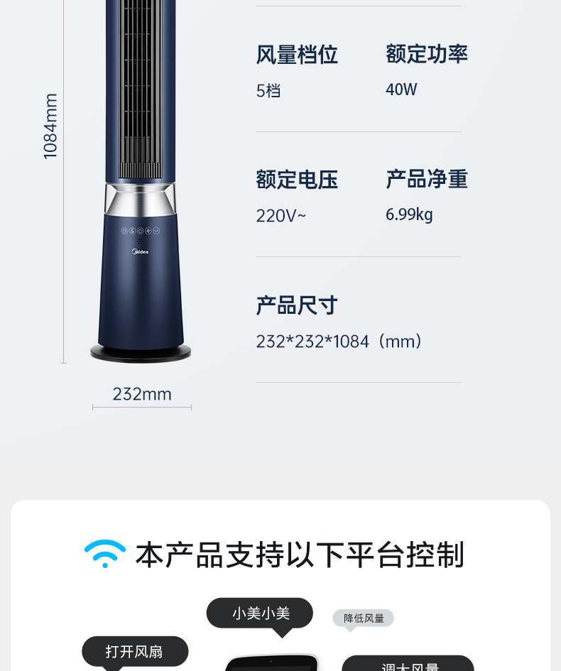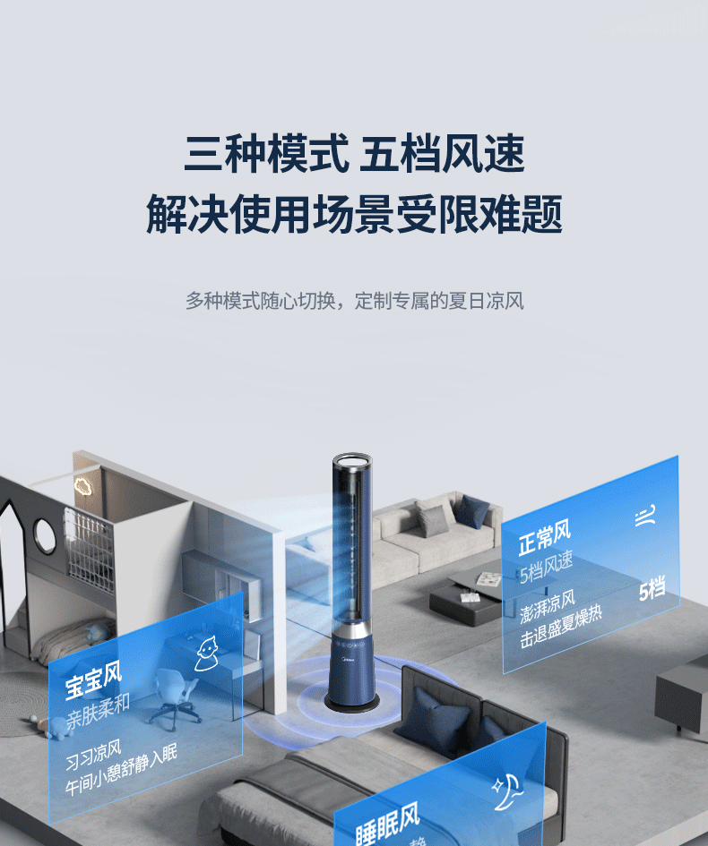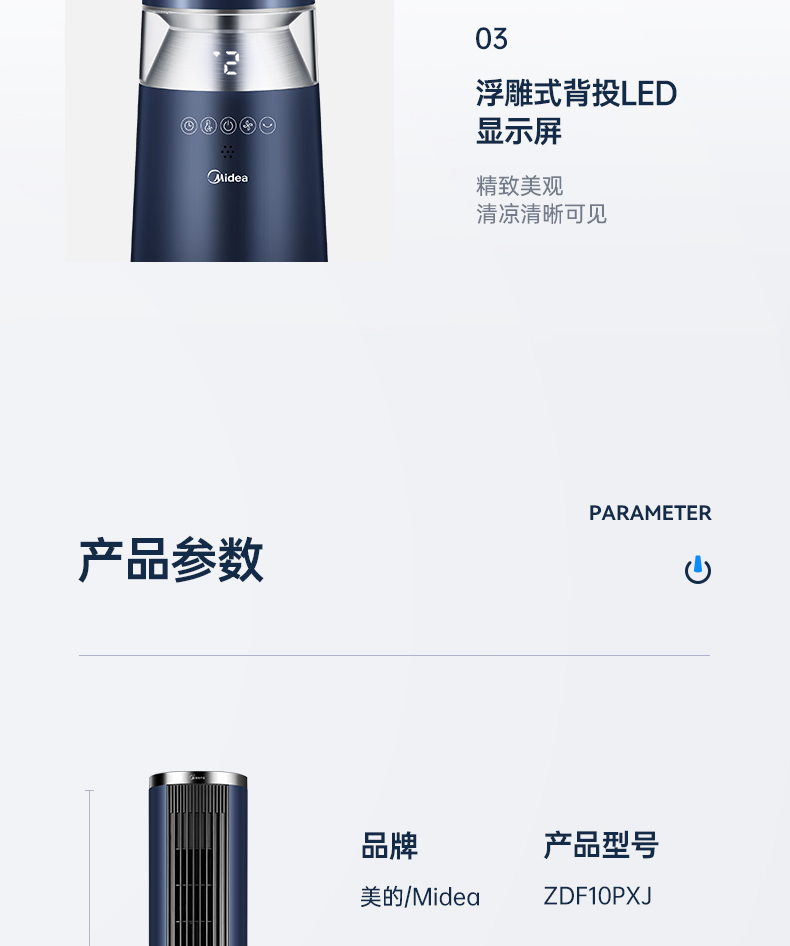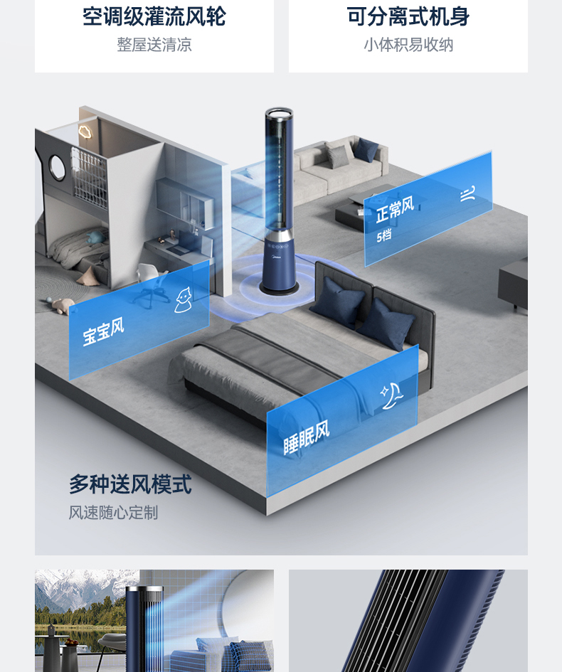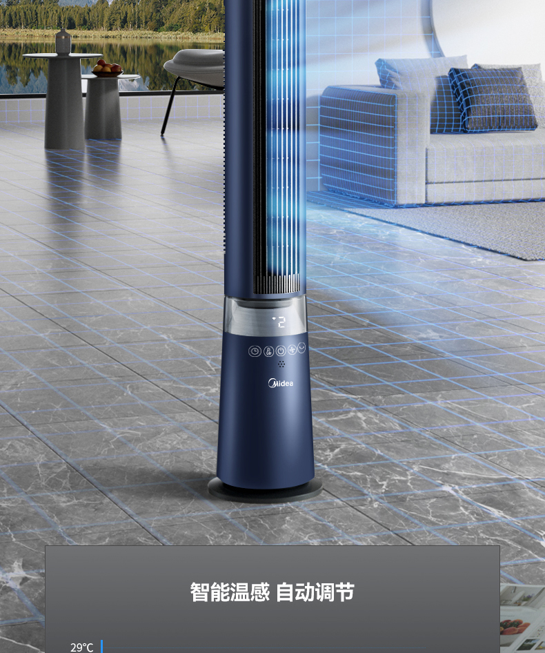 Quạt tháp Midea Quạt tháp Quạt điều khiển từ xa gia đình Quạt sàn điều khiển từ xa làm mát sâu Quạt không cánh ZDF10PXJ