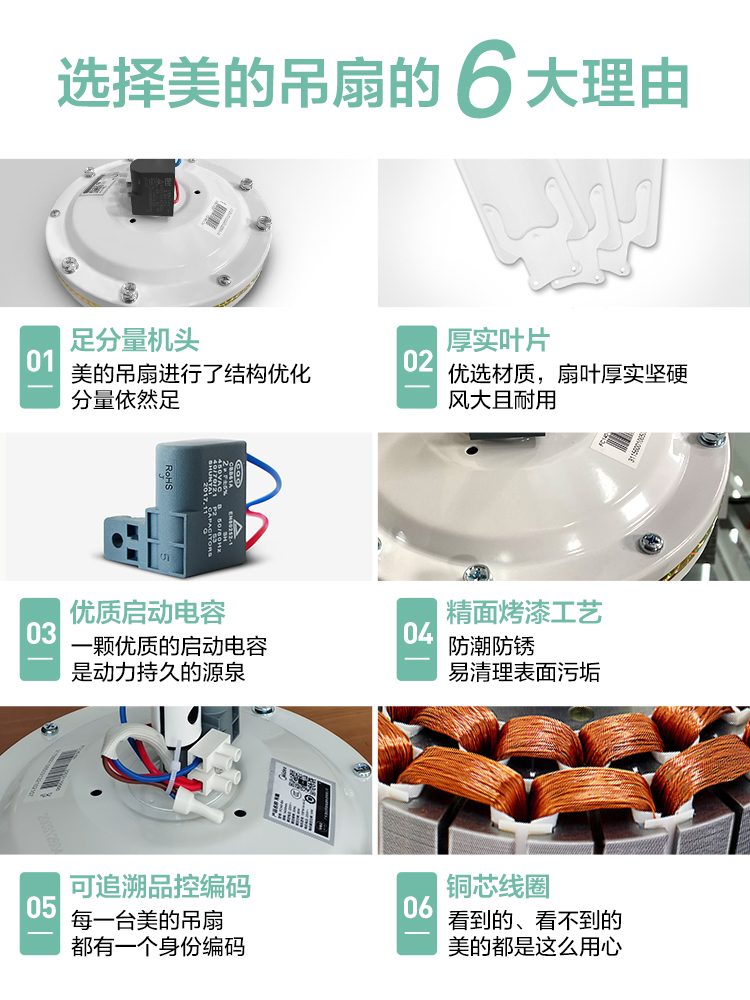 Quạt trần Midea quạt gió lớn quạt hộ gia đình câm nhà hàng thương mại kiểu trần phòng khách ký túc xá nhà máy công nghiệp 56 inch