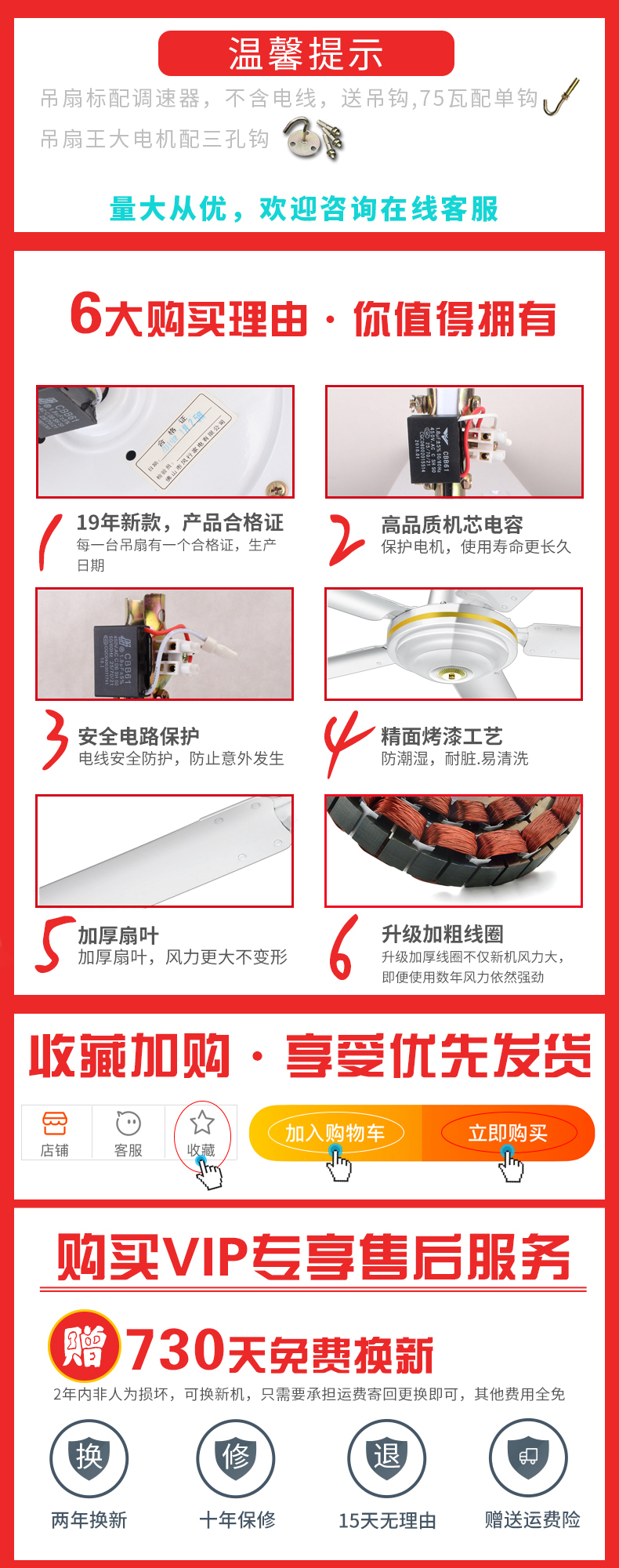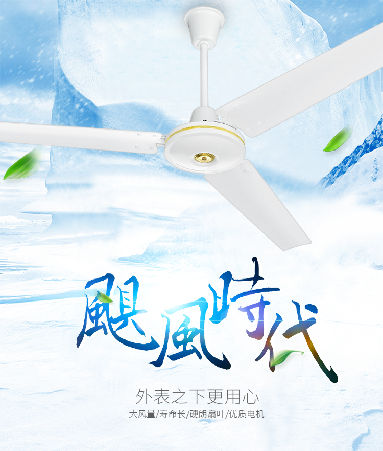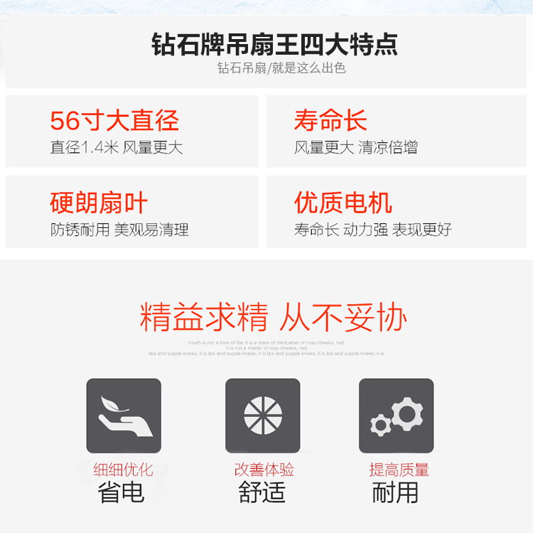 Quạt trần thương hiệu kim cương cánh sắt lá hộ gia đình phòng khách phòng ăn ký túc xá quạt điện công nghiệp năm lá 1400MM gió lớn 56 inch