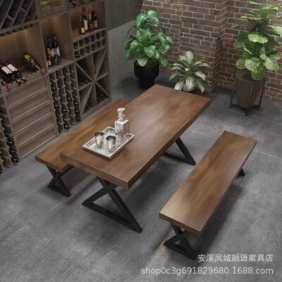 Quầy bar bàn ghế nướng kết hợp phong cách công nghiệp retro gỗ đặc hình chữ nhật cafe quán rượu bàn ghế ăn bằng sắt rèn