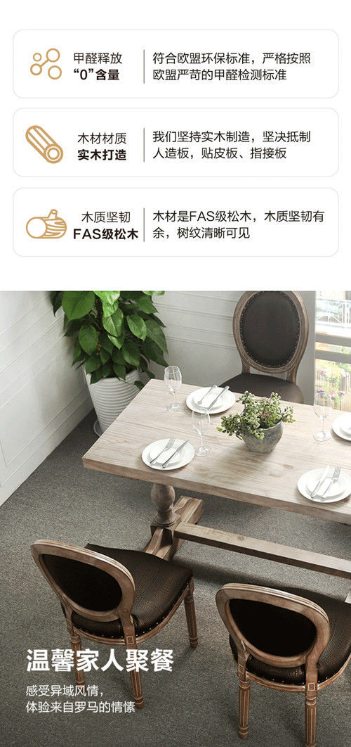 Quốc gia Pháp bàn ăn cổ điển bằng gỗ nguyên khối bàn cũ bàn ăn tại nhà sáng tạo Bàn ăn kiểu Mỹ và ghế kết hợp Bàn cột La Mã