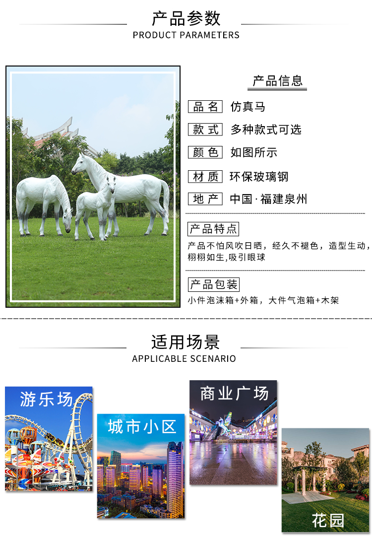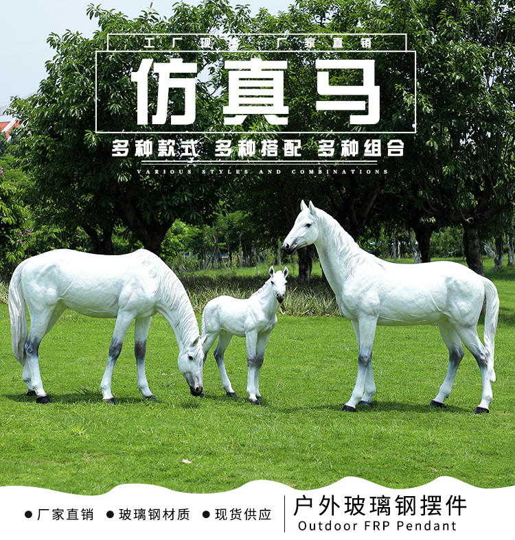 Sản phẩm nổi bật với các đặc điểm: Quy mô lớn sợi thủy tinh gia cố nhựa mô phỏng đồ trang trí ngựa trắng có thể cưỡi động vật ngoài trời điêu khắc trung tâm mua sắm phong cảnh sân vườn trang trí cảnh quan