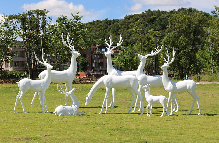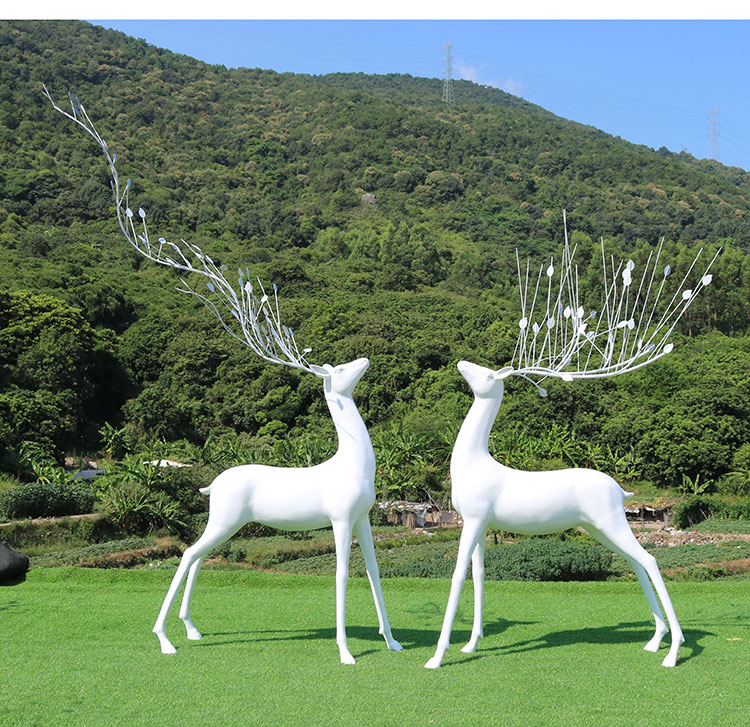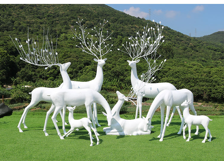 Sản phẩm nổi bật với các đặc điểm: Quy mô lớn sợi thủy tinh gia cố nhựa ngoài trời mô phỏng sika hươu điêu khắc công viên rừng cảnh quan trang trí động vật trang trí hươu trắng đồ trang trí tùy chỉnh