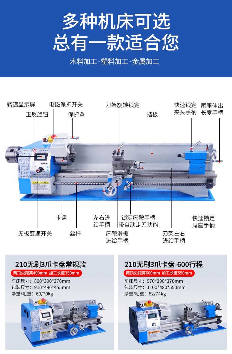 Quy mô vừa và nhỏ 210 máy gia công kim loại vi mô đa chức năng Máy công cụ nhỏ gia dụng Máy tiện hạt nhỏ Máy tiện CNC