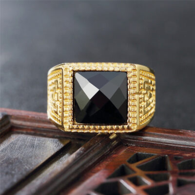 R0872-NK02 Nhẫn Ngoại Thương Châu Âu Và Mỹ Thời Trang Vạn Lý Trường Thành Hoa Văn Đơn Giản Đá Quý Nam Nhẫn Thép Titan