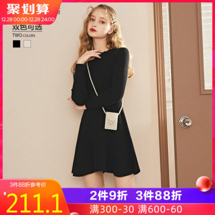 Rakucho vòng cổ eo đầm 2019 mùa thu mới của phụ nữ hai tông màu thanh lịch dài tay dệt kim